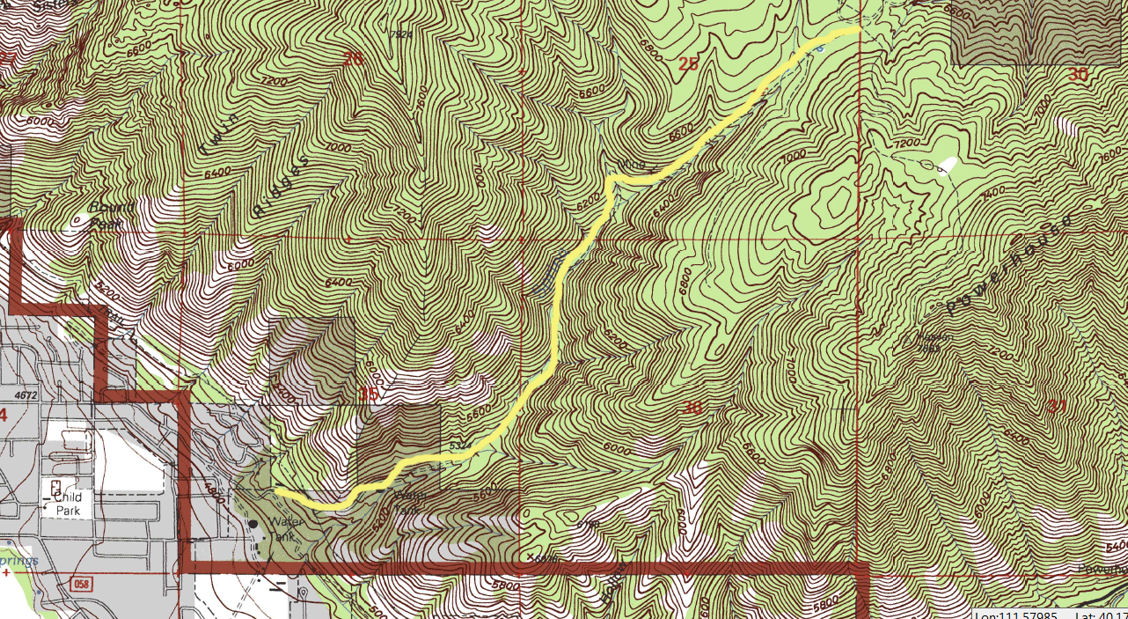 My little family went on a hike yesterday. We actually got out of the house before 9:00, which is doing pretty good for sleeping in until 7:00. Here is where we went on the USGS Springville map. It’s located at the east end of center street in Springville.