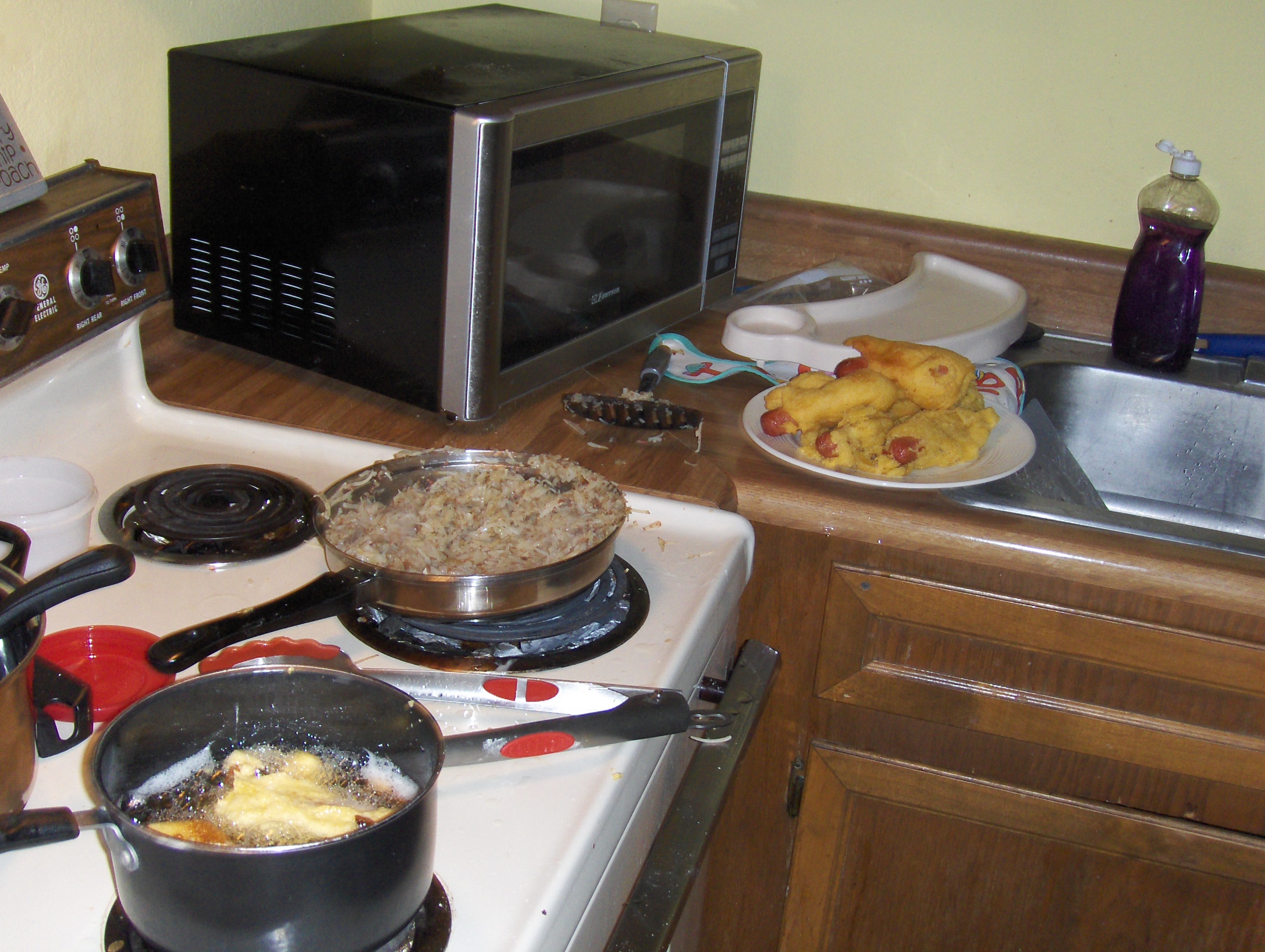 They weren’t that hard, but a little more time consuming than I’m used to. (I like crock pot meals that take 15 min.) They tasted pretty good as well, even though they didn’t look amazing. Combine it with hash-browns, and it was a great way to get rid of any sort of fast food craving. My stomach is not liking all the oil loaded in everything and the lack of vegetables (I was lazy and counted the hash-browns.) Peter didn’t really eat it and had a tortilla instead.