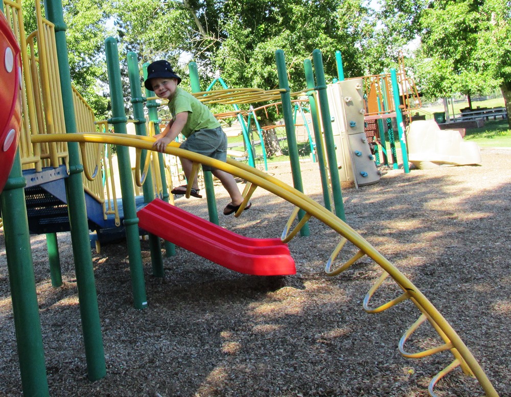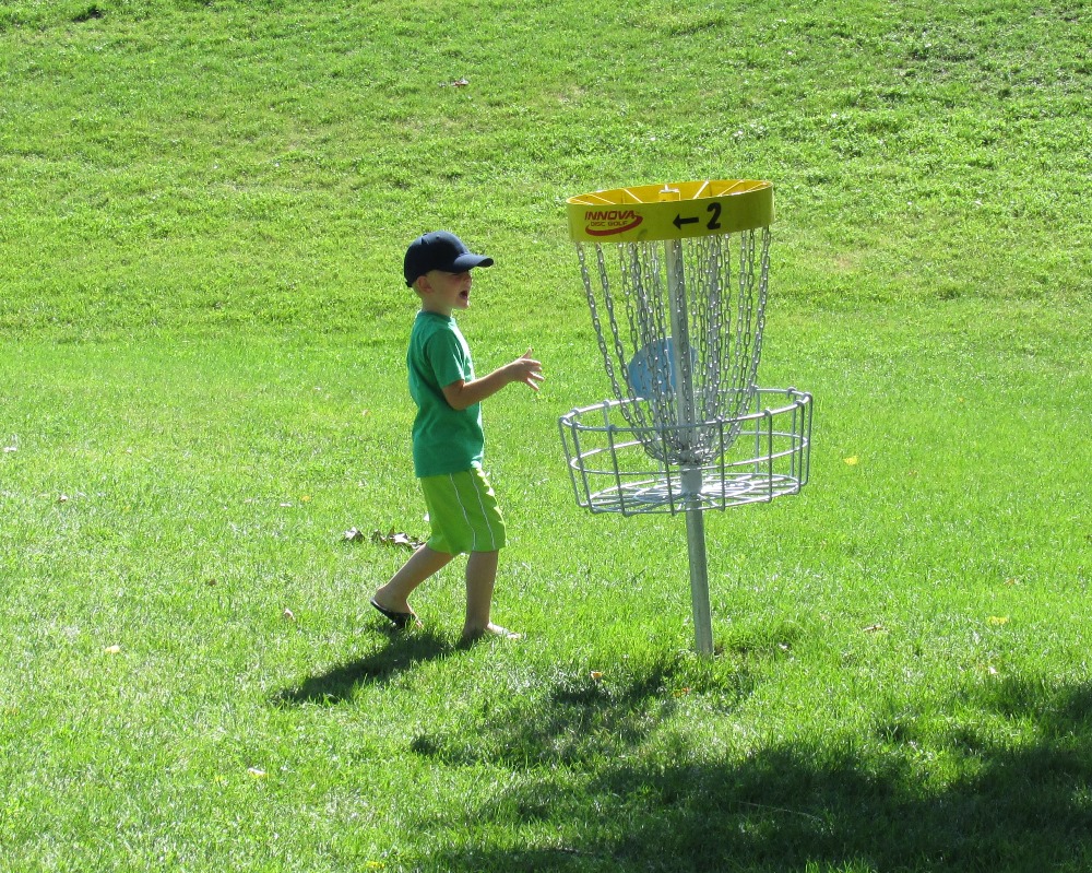 We found a new park, and it just might be our favorite. It’s twenty minutes south of us in Harrisville. I first found out about it when I drove by and saw disk golf stands. My husband and I, and sometimes our children, like to go disk golfing, so we are always keen to try out new courses. (By the way disc golfing is a wonderful hobby. The whole family can enjoy it, it is very inexpensive with startup costs of a $7 disk and you really only need one, and doesn’t take a whole lot of time. And you can do it anywhere, coursers are located across the country, which makes for some fun adventures on trips.) When I was looking up the course, I found out that not only did the park have a new disk golf course but it had a splash pad as well. Double win.