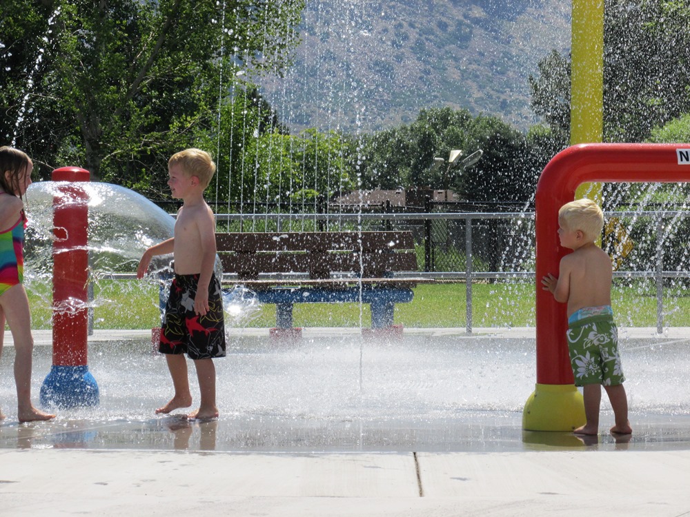 So last Saturday we spent the day in the park, throwing disks on a pretty good course, playing on the playground, and finishing up with the splash pad. This time the kids actually got soaked (last time we went to a splash pad they didn’t even get wet). It helps that Daddy decided to get his swimsuit on and play with them.