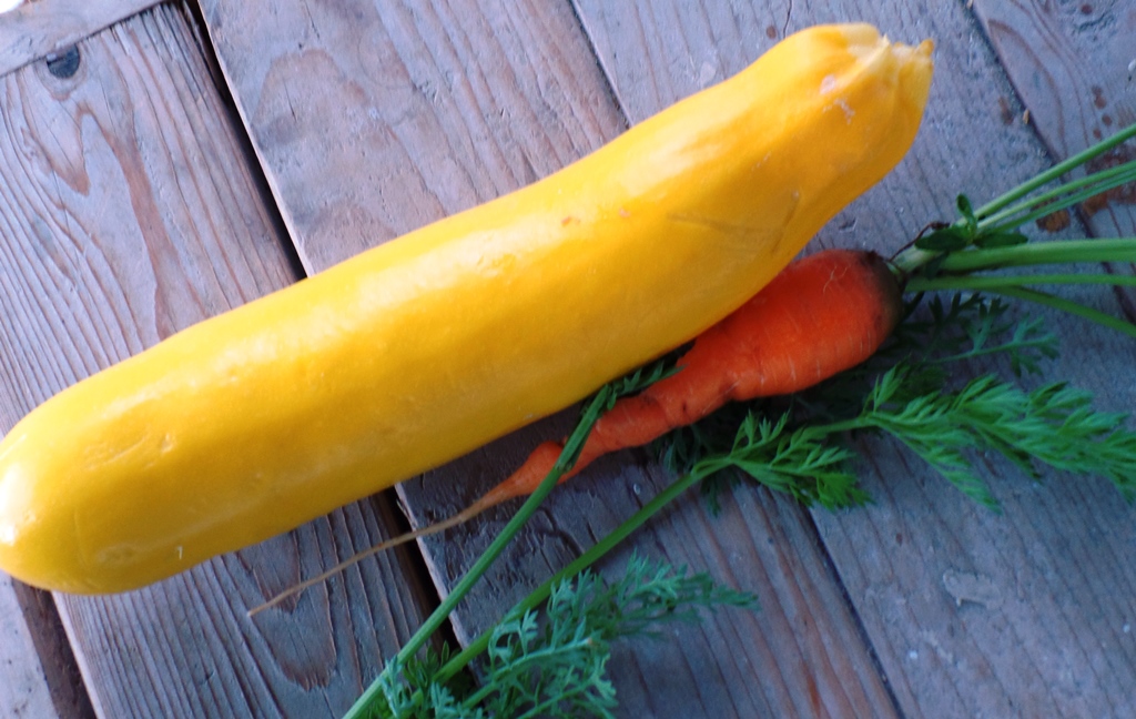 The summer squash has been producing. That’s about it for now. The tomatoes didn’t set fruit in the high temperatures in June. I’m regretting only planting heirlooms. Hybrids often have better fruit set in the heat. The other plants are coming along slowly. But that doesn’t mean I haven’t been able to get a harvest and eat it, just that I have needed to be a little more creative.