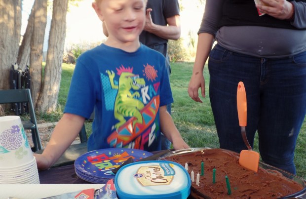 He had fun. The Sunday before we had a party with Joe’s family. It was a just because party, but Peter thought it was for his birthday. On his birthday we went down to Grandma’s (my mom) and visited with cousins, went to a small amusement park there, and ate pizza and cake.