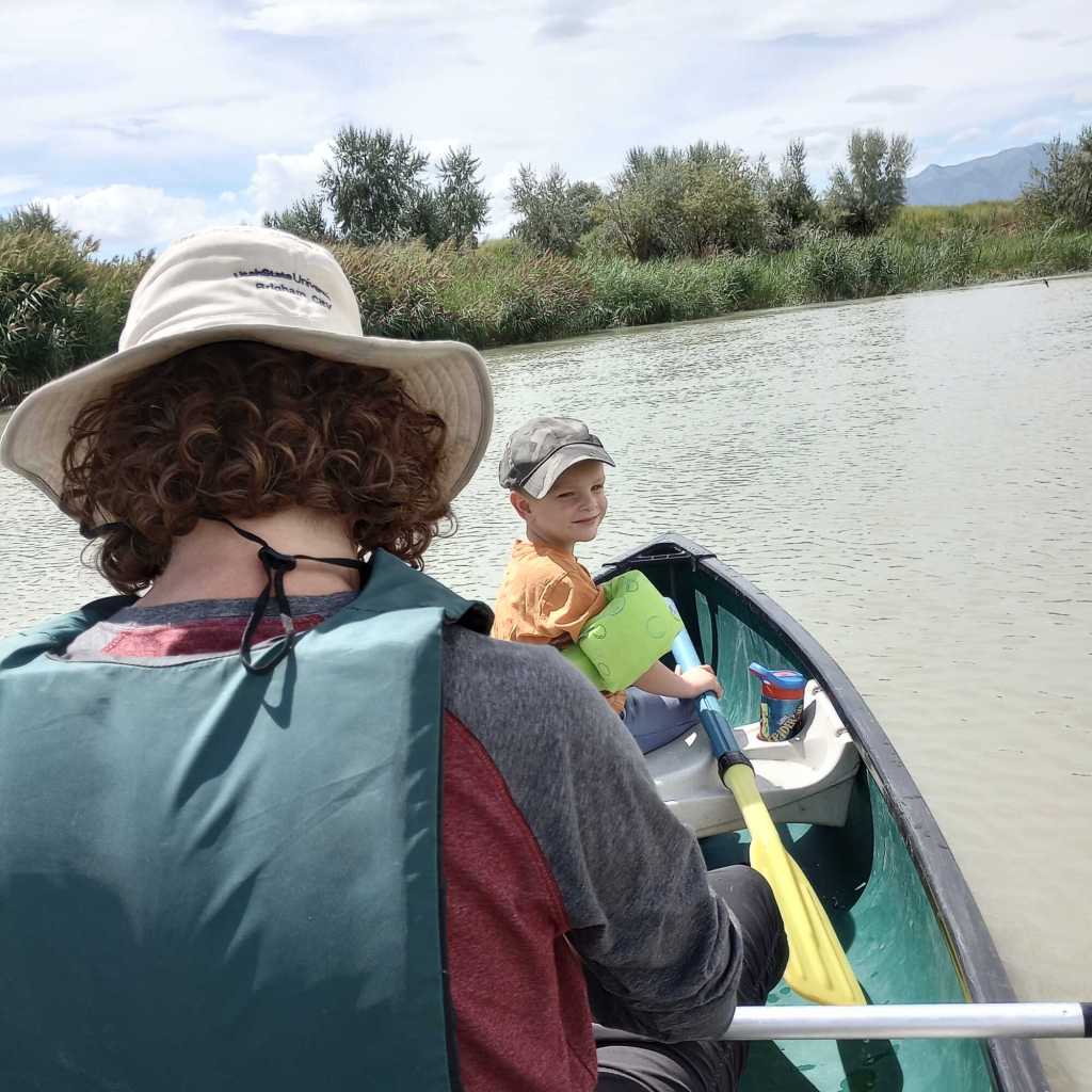 We canoed done the Jordan River. It was Joe, Zack, and me, and we went a 3-mile downstream route that took a couple hours. So much fun. (It was in contrast to the disaster trip I had done on this same stretch of river when I was a teenager. We tried tubing, and the river was too slow.)