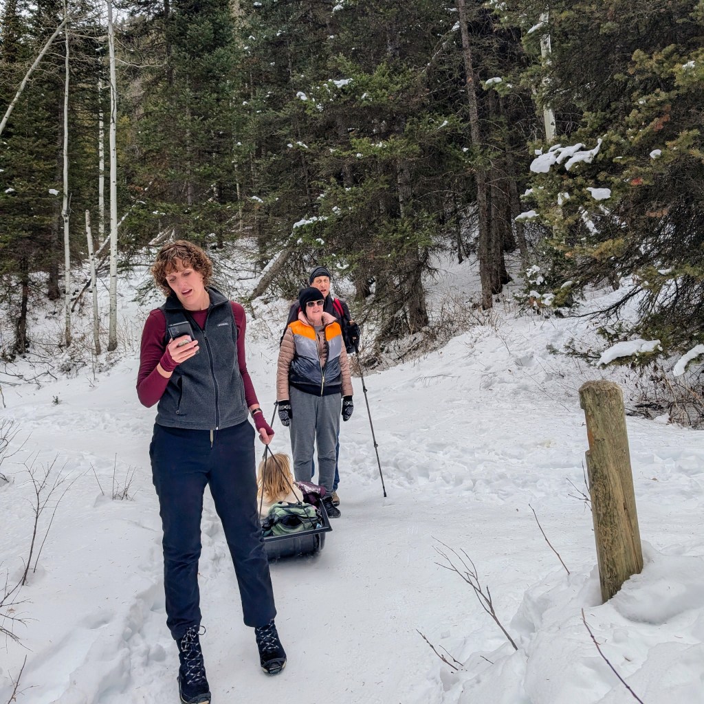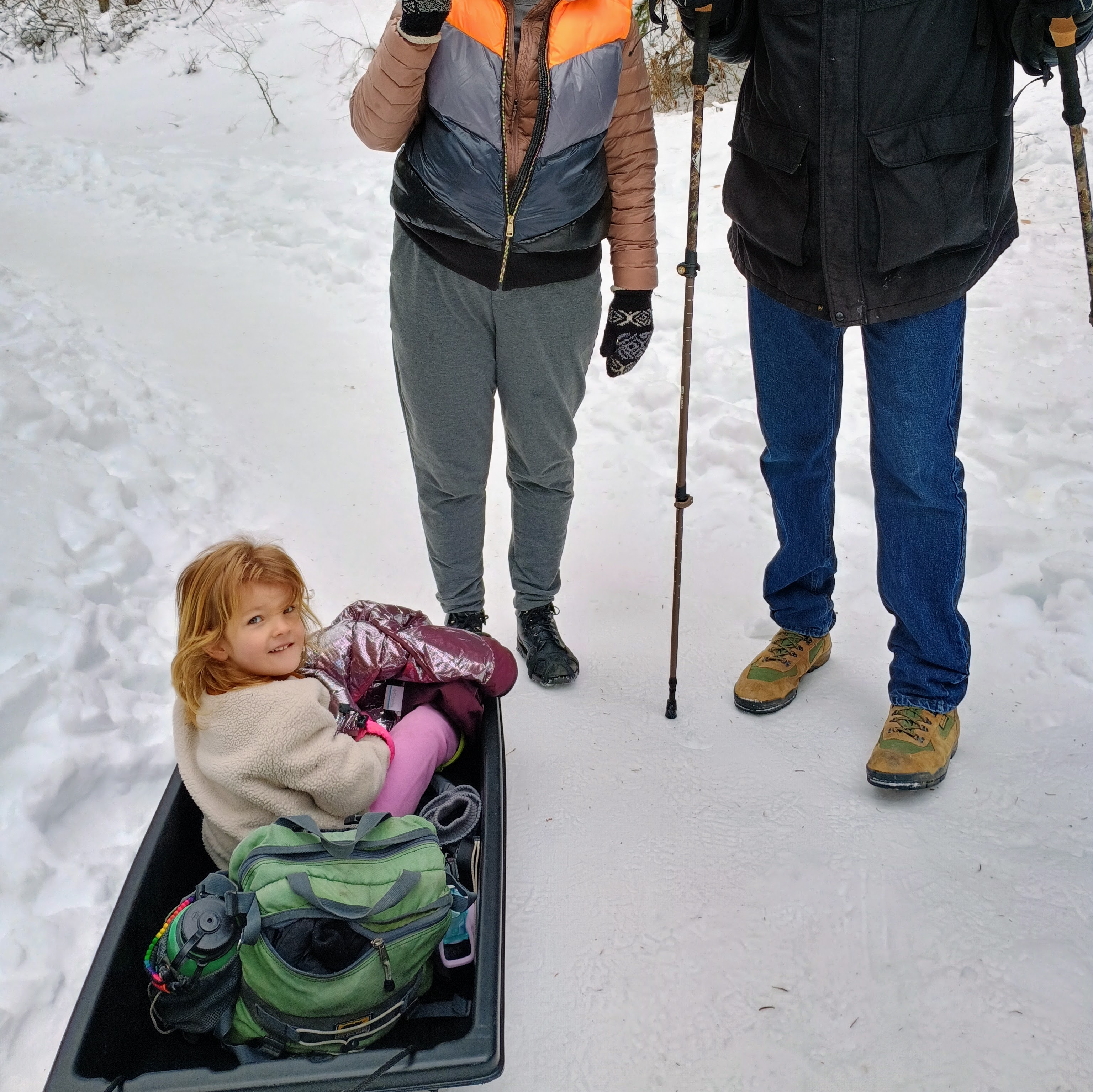 I went on a hike with my sister and parents up by Donut Falls. It was a beautiful winter hike, unfortunately, a little too long for Evie, who was cold and hungry and not happy on the way back. A dish of mac and cheese cheered her up.