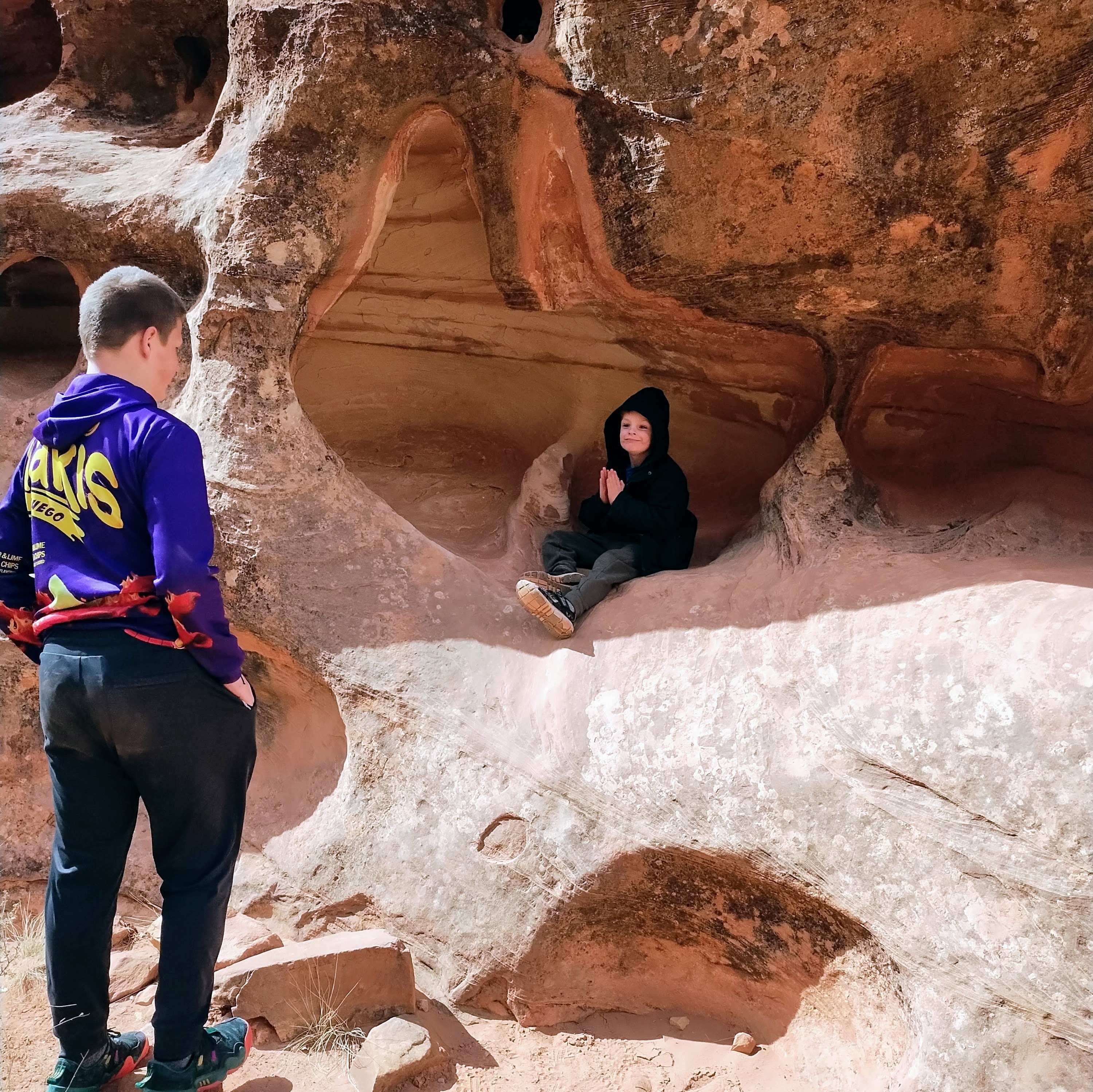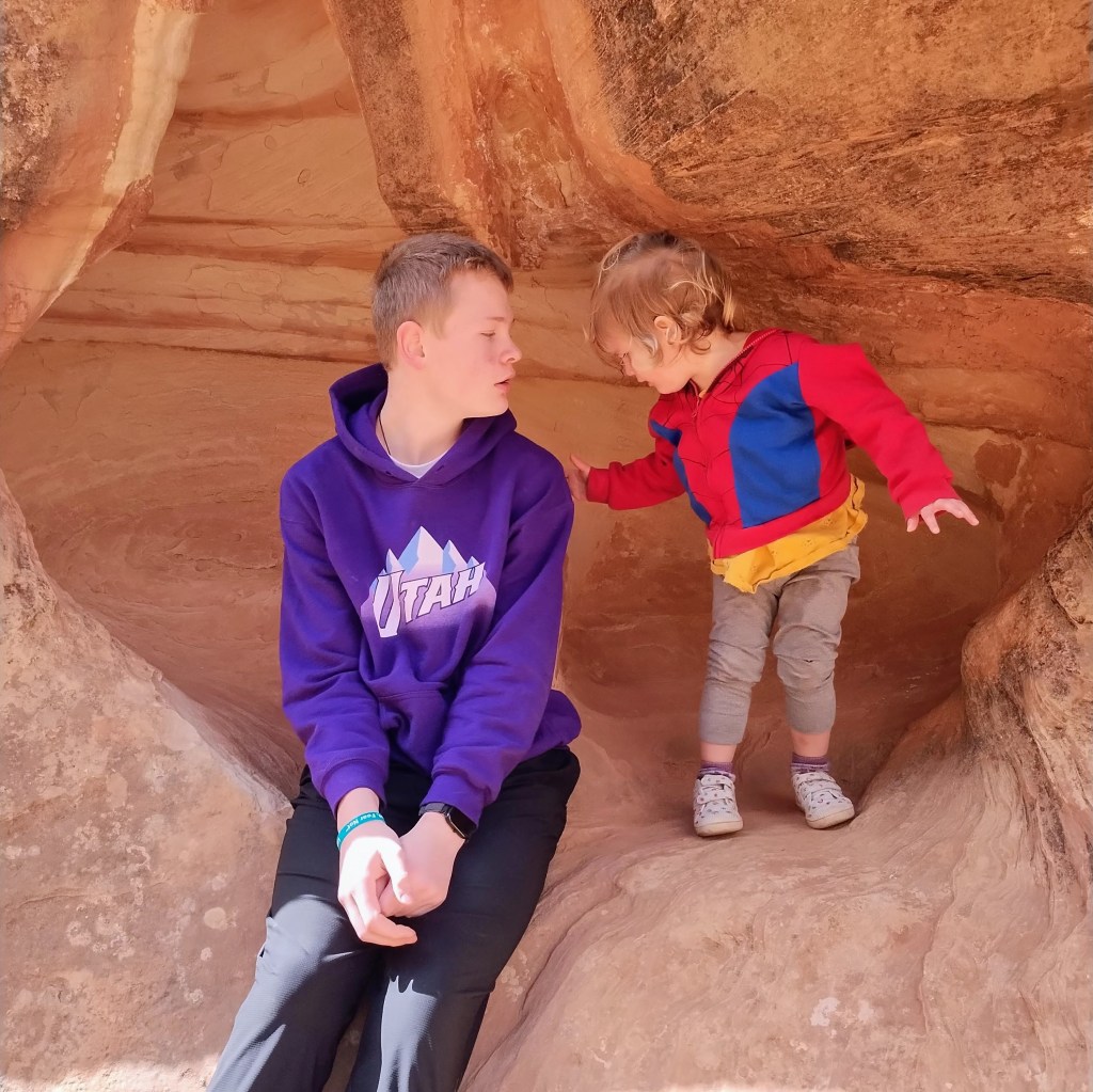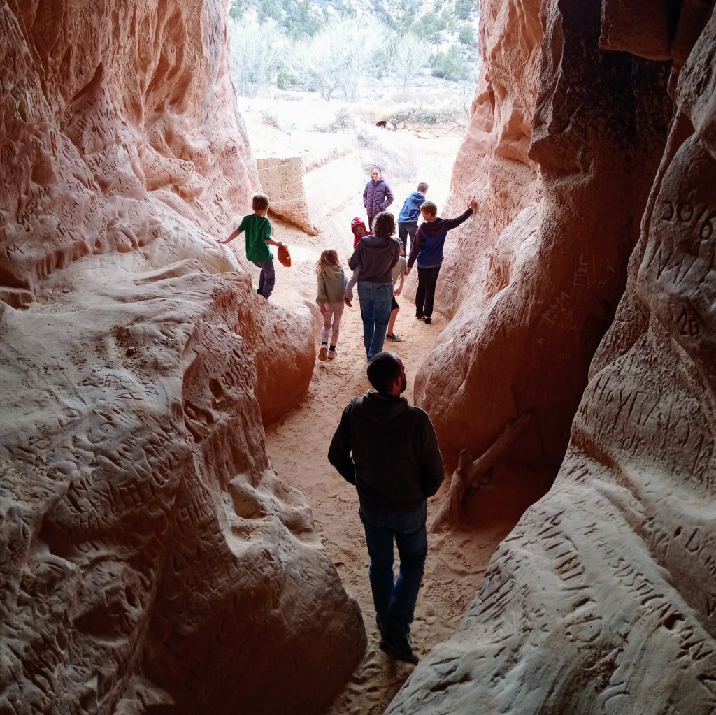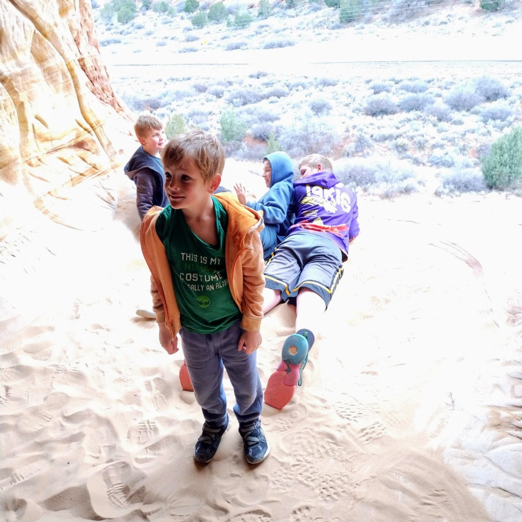 For our trip, we stayed a night in Kanab and visited The Belly of the Beast and Sand Caves. My brother-in-law grew up there and thought it was a little odd that these man-made areas were now tourist attractions, but they were fun. We met up with my sister and her family for most of the trip.