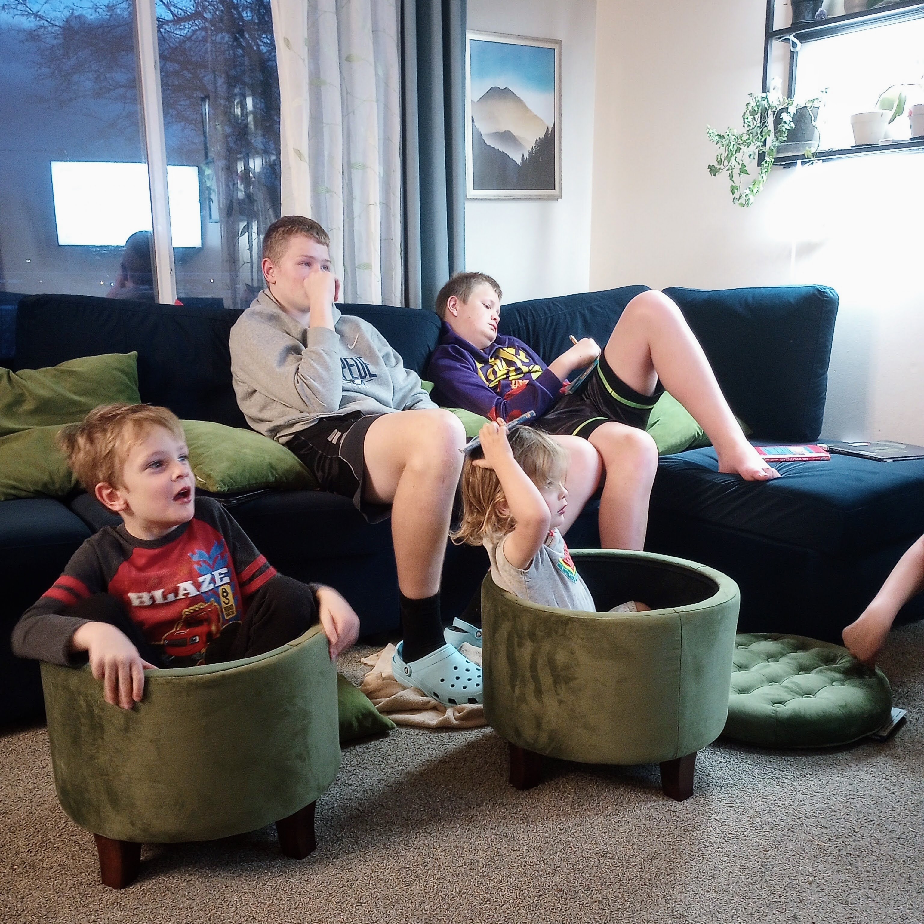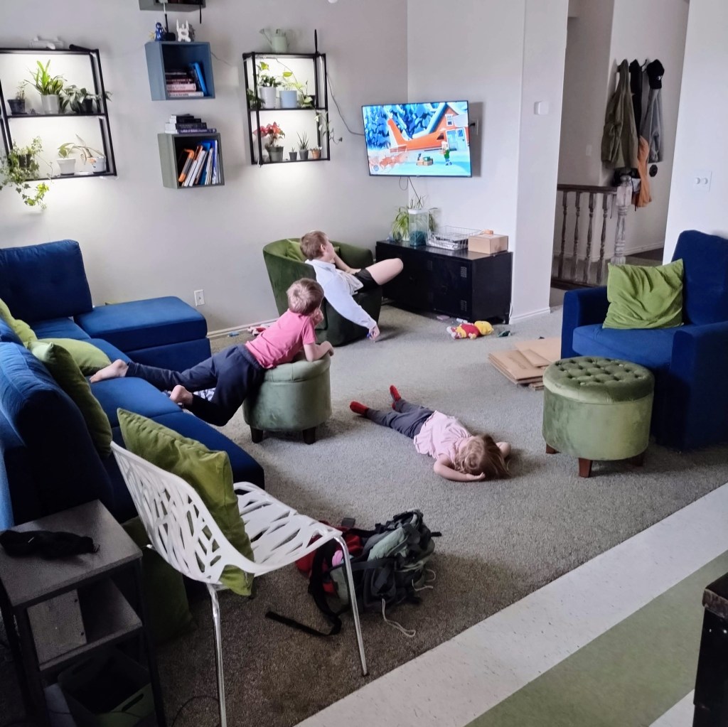 And there is still lots of leisure, we got a new couch that has been getting lots of use. And it looks exactly like our old one: the problem wasn’t the aesthetics but the couch breaking out the back, thanks to kids. Luckily, it’s also been warm outside, so it’s a lot easier to keep the kids entertained. Except for Evie, who thinks she’s old enough to ride her strider bike down the street all by herself: I have to keep a close eye on her and have lost her too many times.