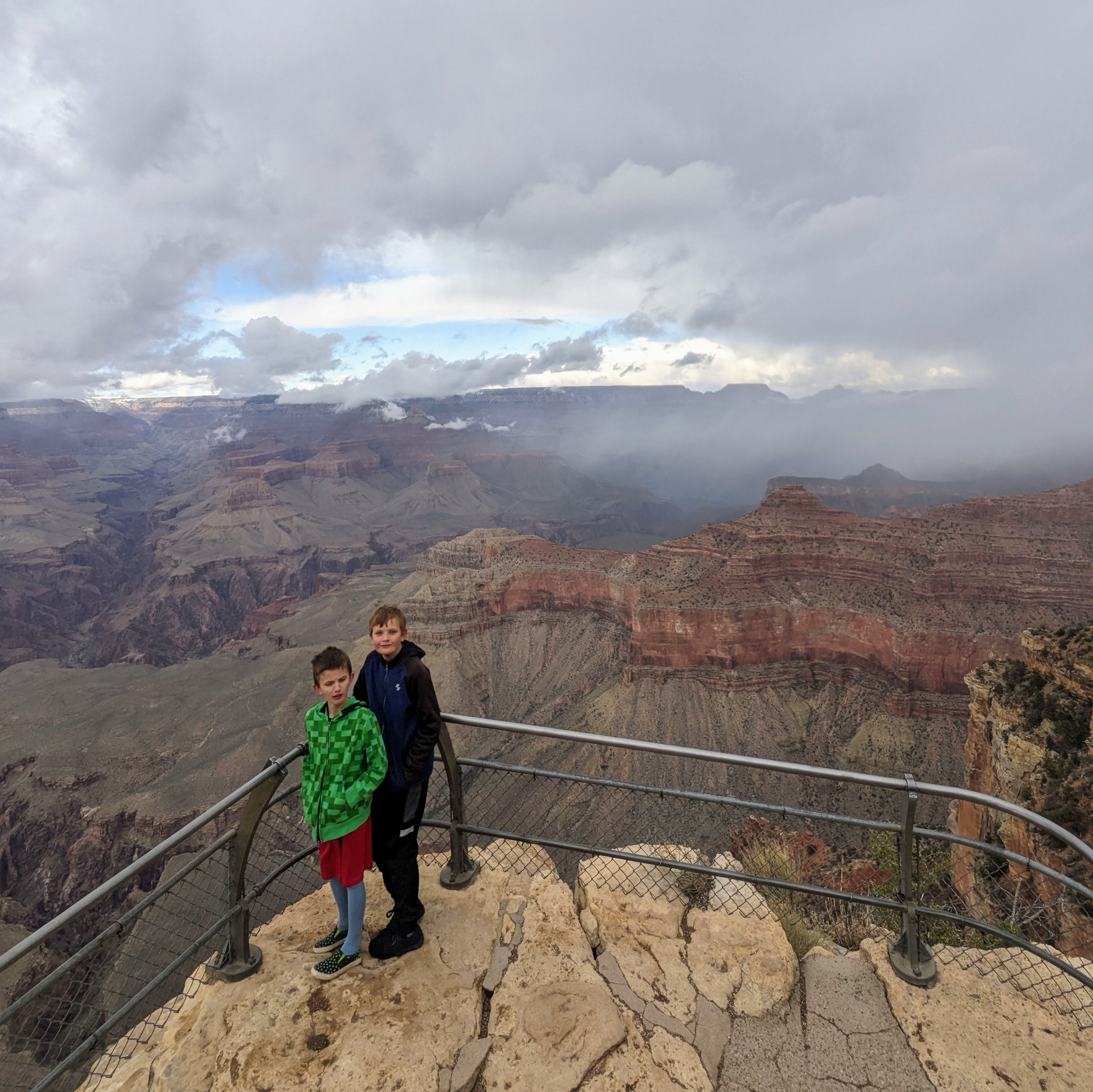 We went down and camped at the south rim of the Grand Canyon. The first day, we enjoyed quite a few overlooks, visitors centers, and set up camp. FYI: Bring extra stuff. So when a sleeping bag has a broken zipper, you have an extra, or when your rain fly got left out because it was wet last time you camped and you forget to bring it, you can use a spare tarp.