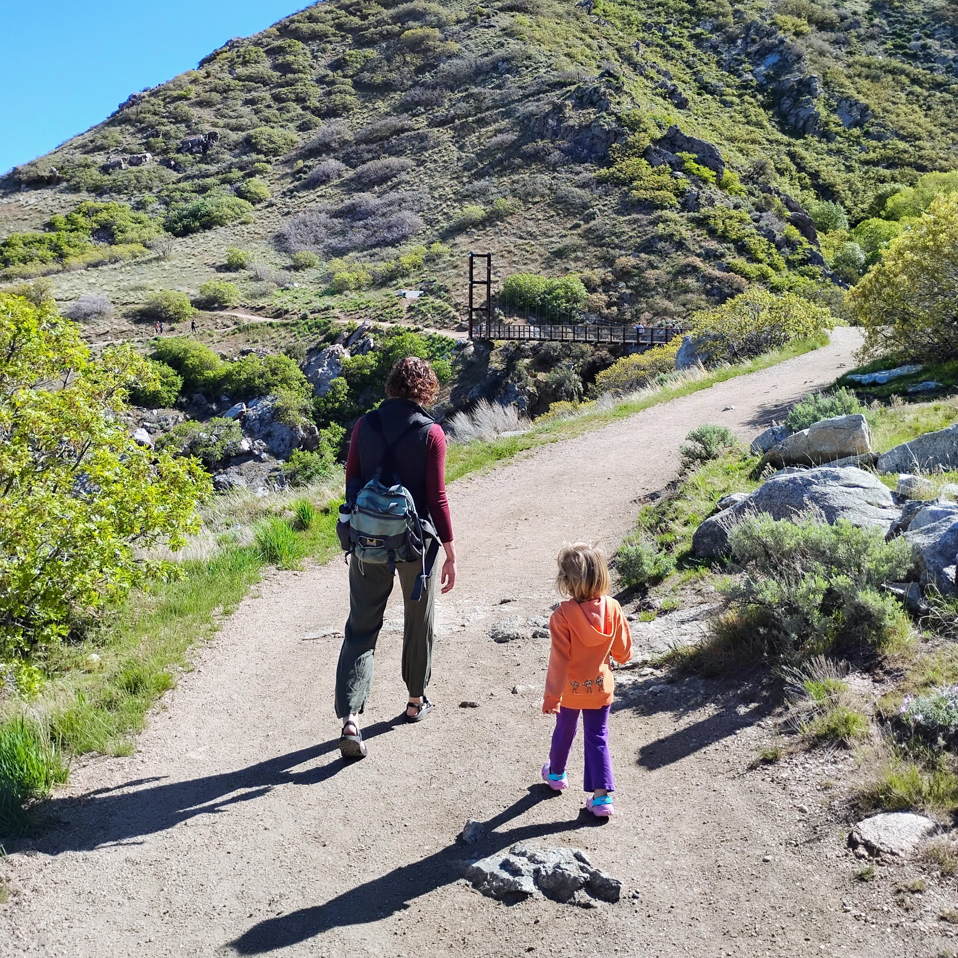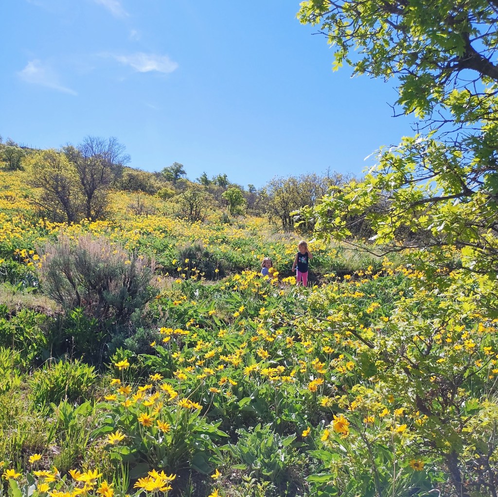 I’ve enjoyed flowers in my garden and flowers out hiking. I went to the Three Falls area with friends to catch the show of arrowleaf balsamroot, and with my husband to the suspension bridge in Draper. We also enjoyed a game of Jet Lag, where we spent three hours playing a game of hide-and-seek across our city. My team lost, but only because the other team pulled a move card right before we found them and were able to move around.