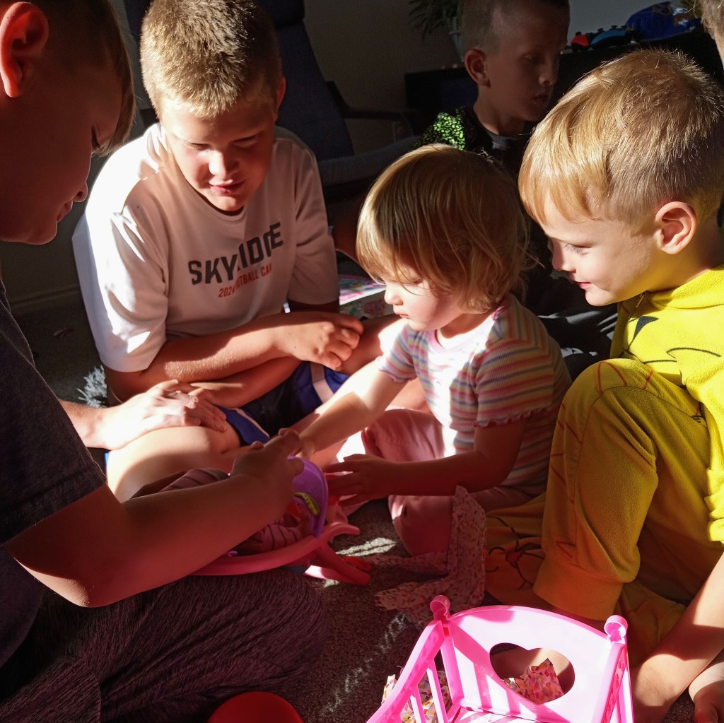 Evie’s birthday was next, she had a great time. Maybe not so much when she had a diaper disaster in the middle of everything, but that was more Mom’s problem than hers. I loved watched her get all the attention, especially from her brothers.