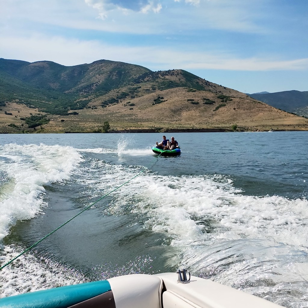 We also went tubing on Deer Creek Lake with friends. Lots of fun, except for Peter who doesn’t like tubing but did like the candy, and I got seasick. Luckily not until the very end. Zack was so proud of himself for being brave and going on the tube. Henry and Curtis went on so much and so hard that the tube broke at the end!