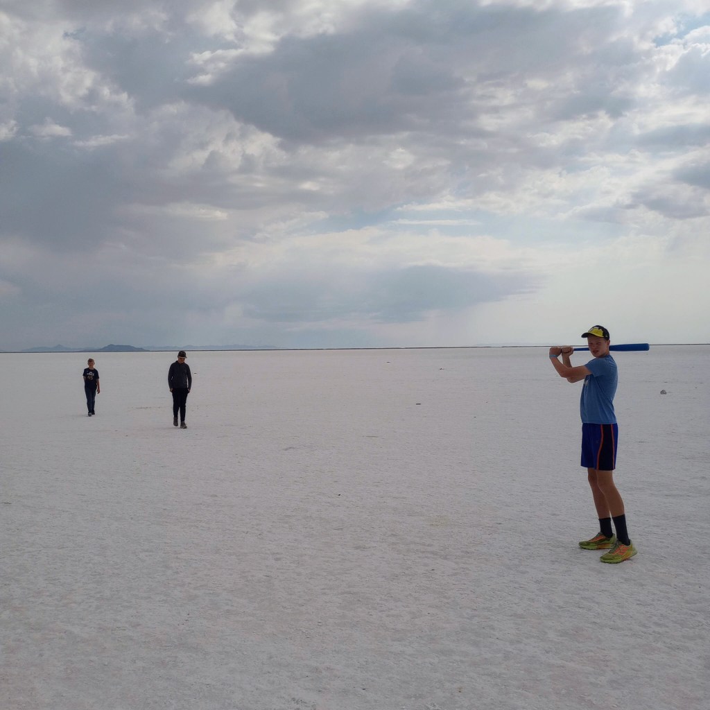Day 1: We stopped by the Salt Flats and played whiffle ball. At this point Peter decided to play whiffle ball everywhere we went. We drove near Lake Tahoe and camped. We made it to the lake later in the evening to play around. Mostly driving this day.