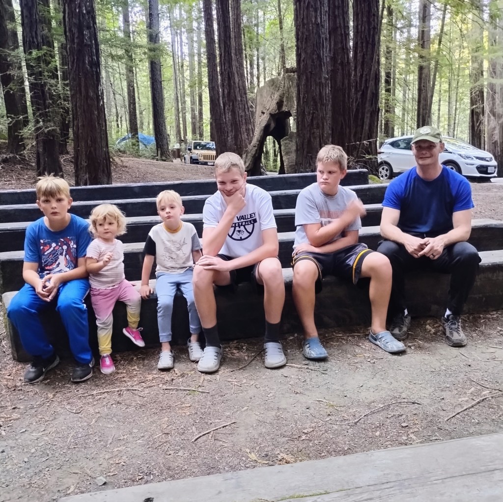 Day 2: This was Sunday. We drove to church in Yuba City, and walked around the temple there. Had a picnic at a park, and then drove to Humboldt Redwood State Park where we camped.