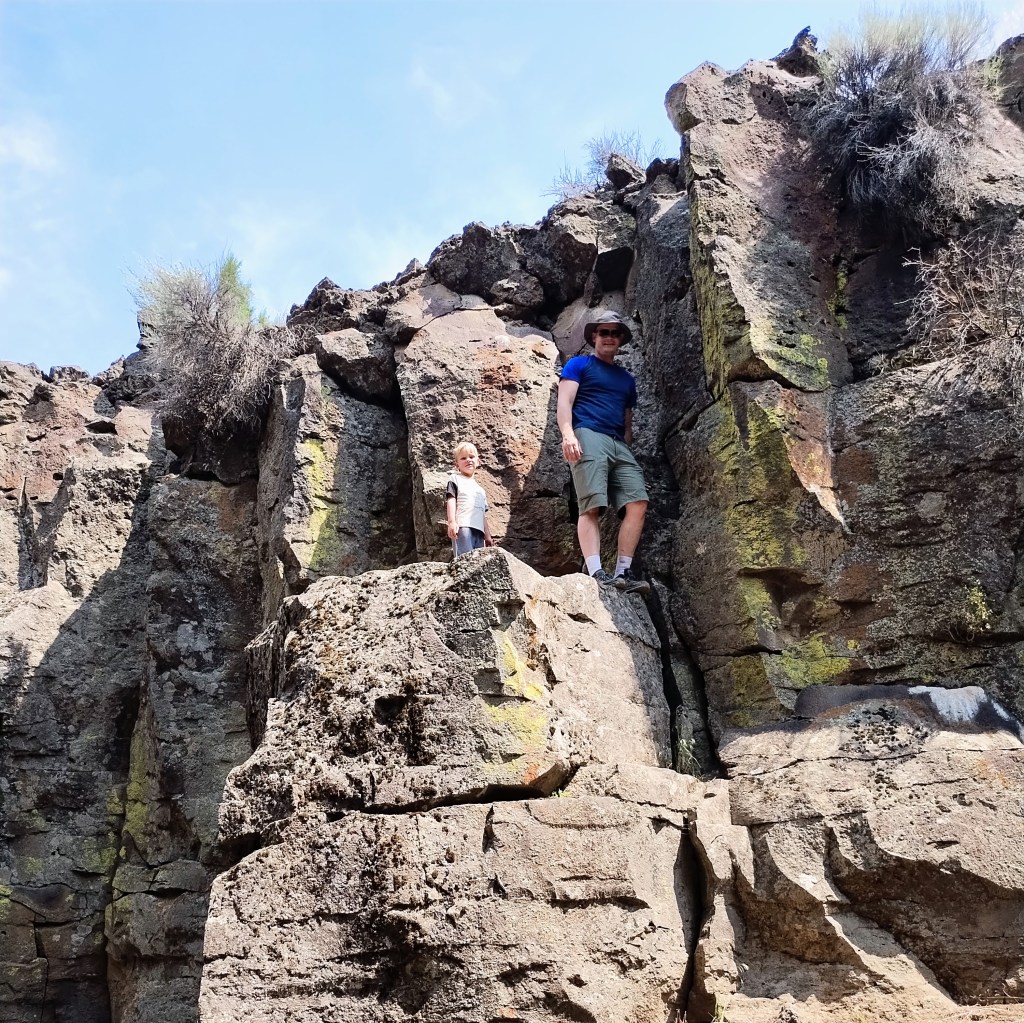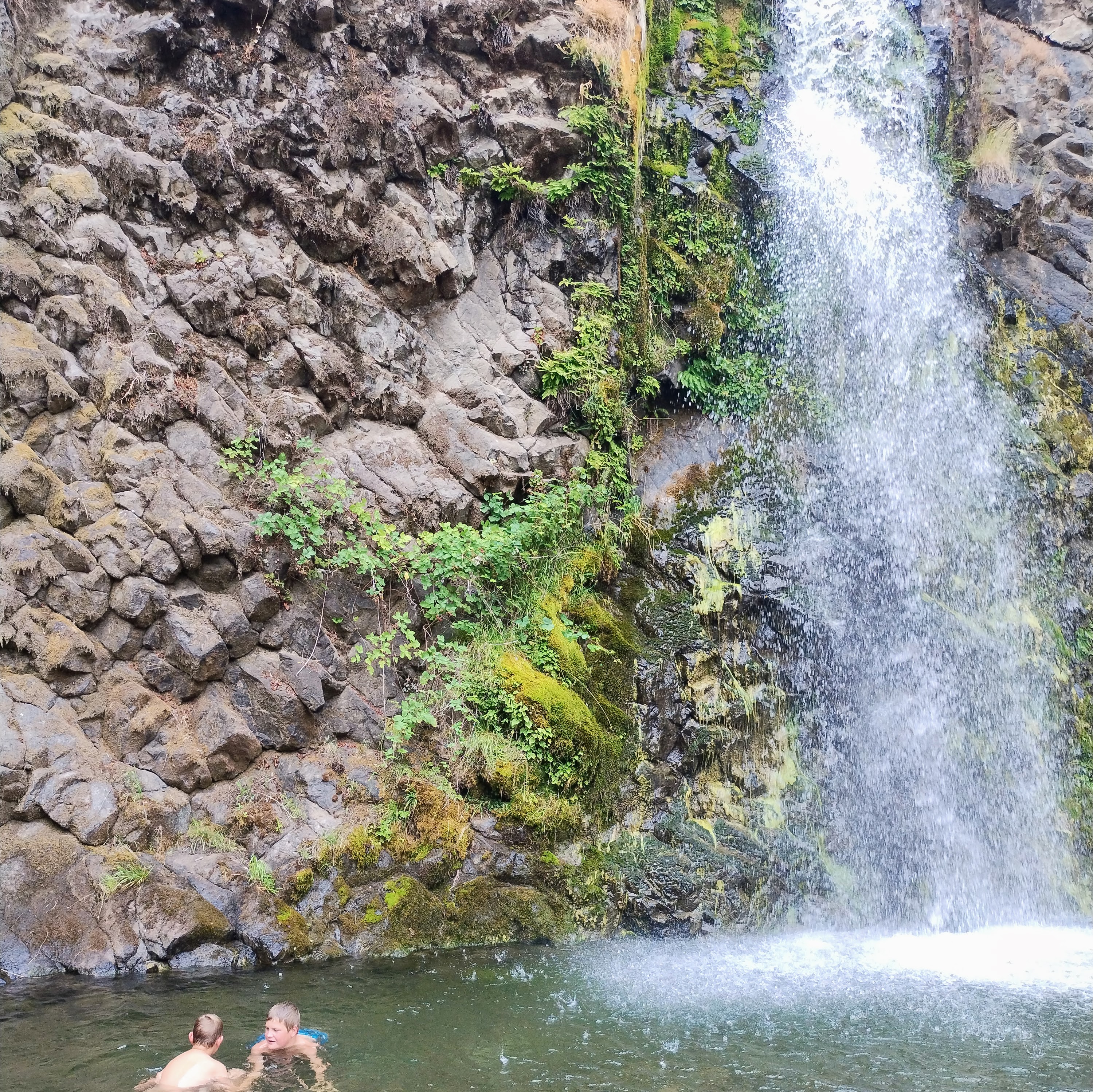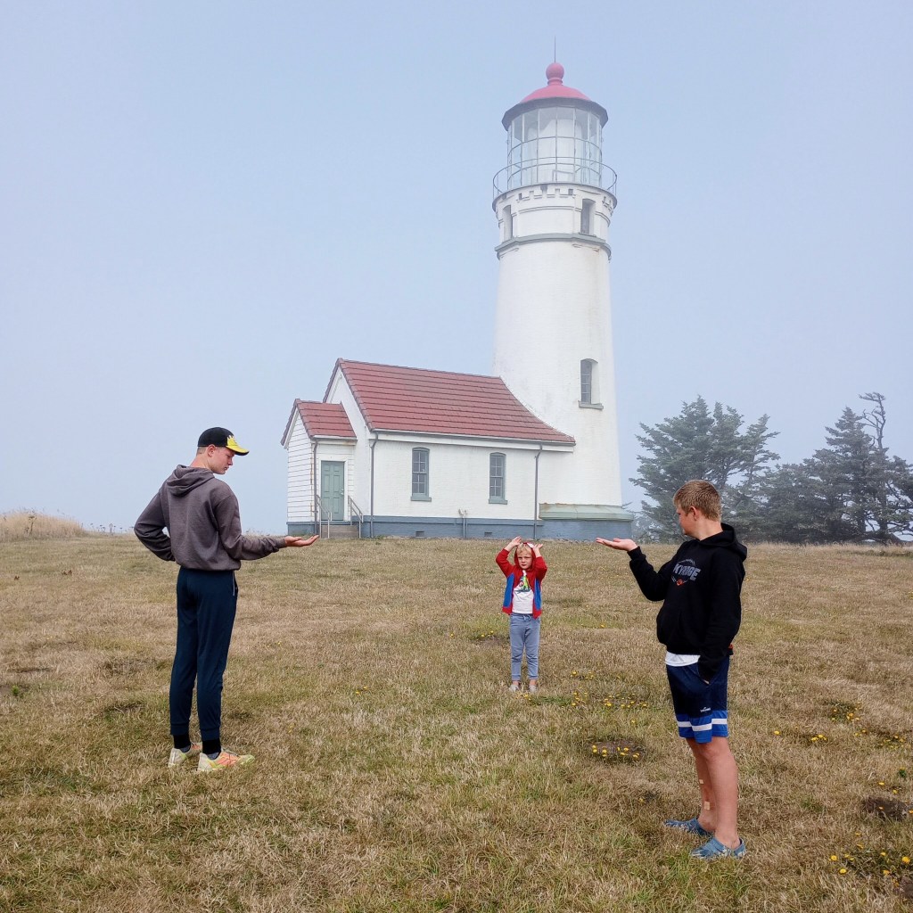 Day 6: Drove to Cape Blanco to see a lighthouse, and then headed inland again. We hiked Fall Creek Falls. That was a hot hike, but luckily a good pool to play in at the waterfall. The area we drove across for the next couple of days had a lot of smoke due to wildfires, and many areas were closed. We camped at Crater Lake. We briefly got a view of Crater Lake, but mostly it was too smoky to enjoy.