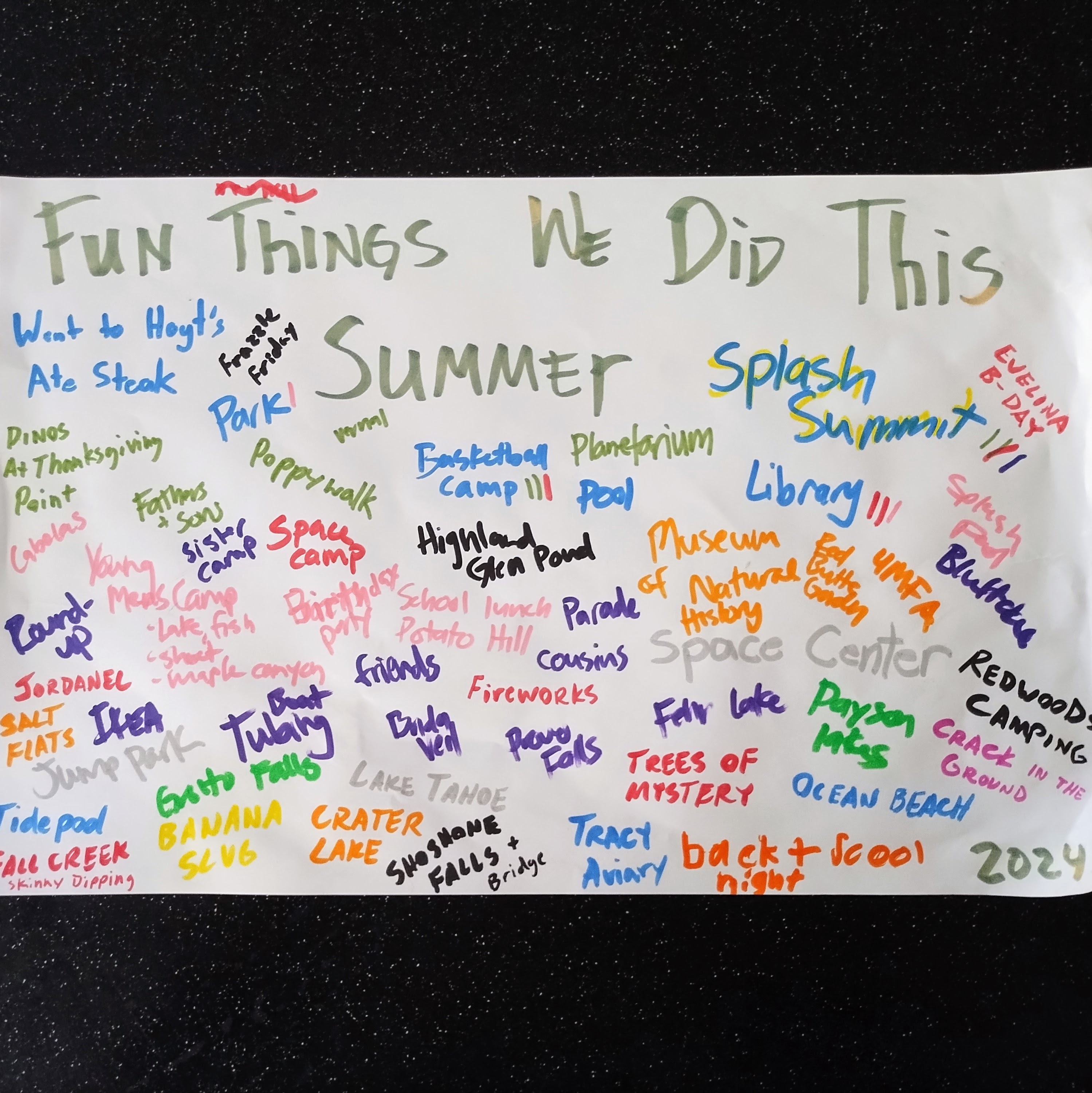 We’ve been to parks, Storytime, and Splash Summit. I had an overnight trip with my sisters where we played on the lake and went hiking and talked.