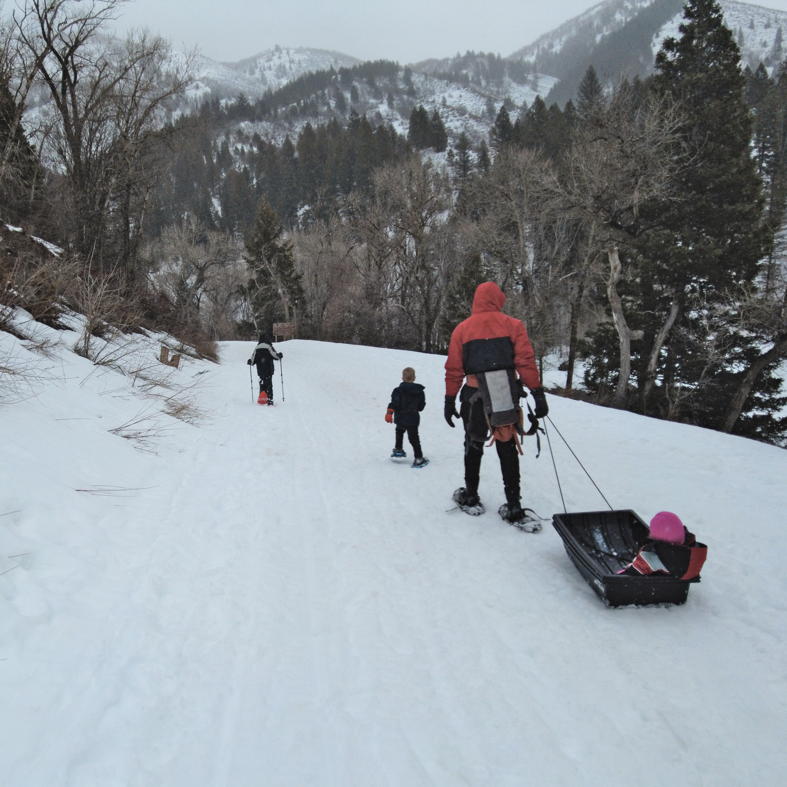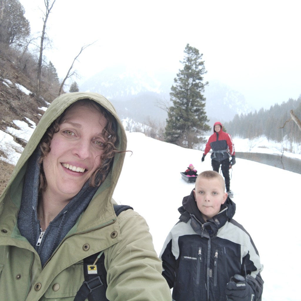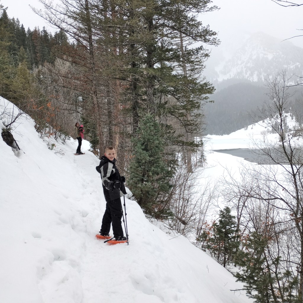 We went on one large snowshoeing adventure with our younger kids at Tibble Fork. It was a pretty easy hike along the road for the first part, and a lot more interesting after we got off the road. We followed the backside of a stream until we came to the lake where we started from.