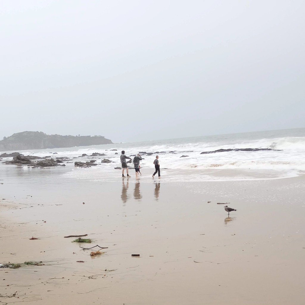 It was rainy. We went to the beach by ourselves the first day we drove in.