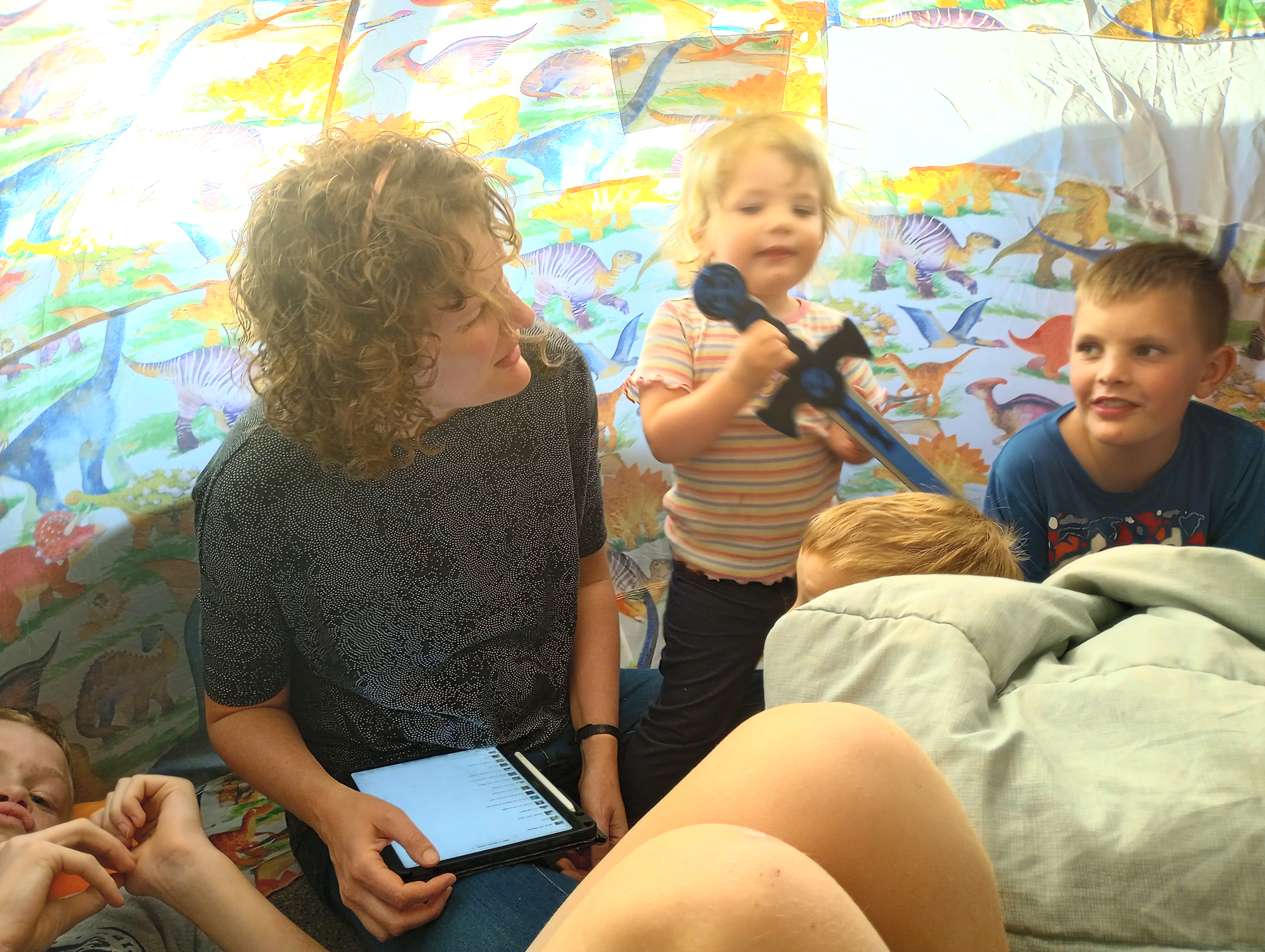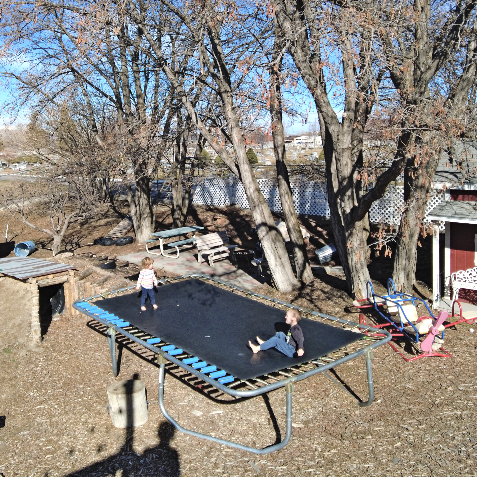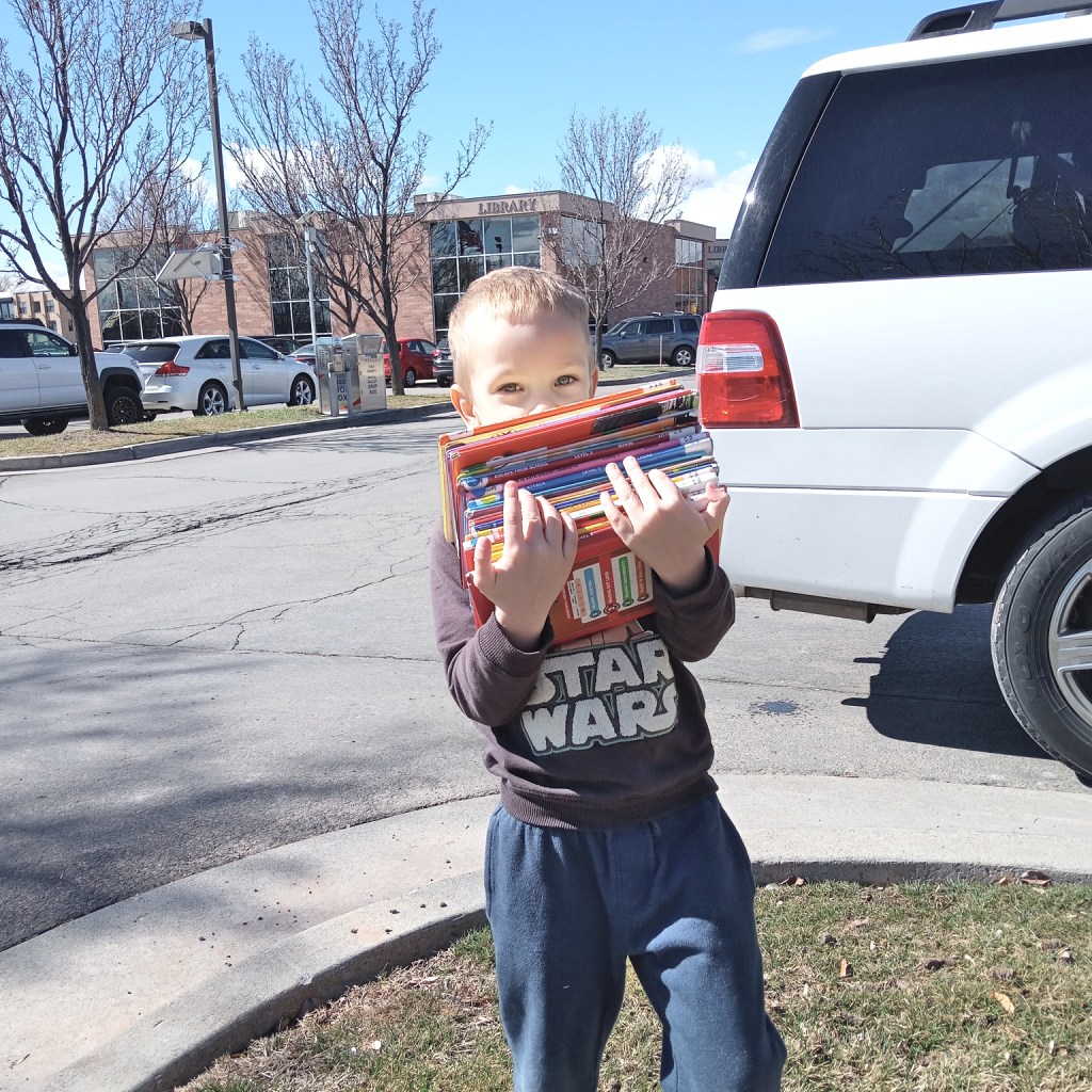 There are also some pictures of normal life: library visits, and trampoline time. Evie and Zack adore the trampoline. We did add an enclosure after this picture, and hopefully, we only have one broken bone on it…