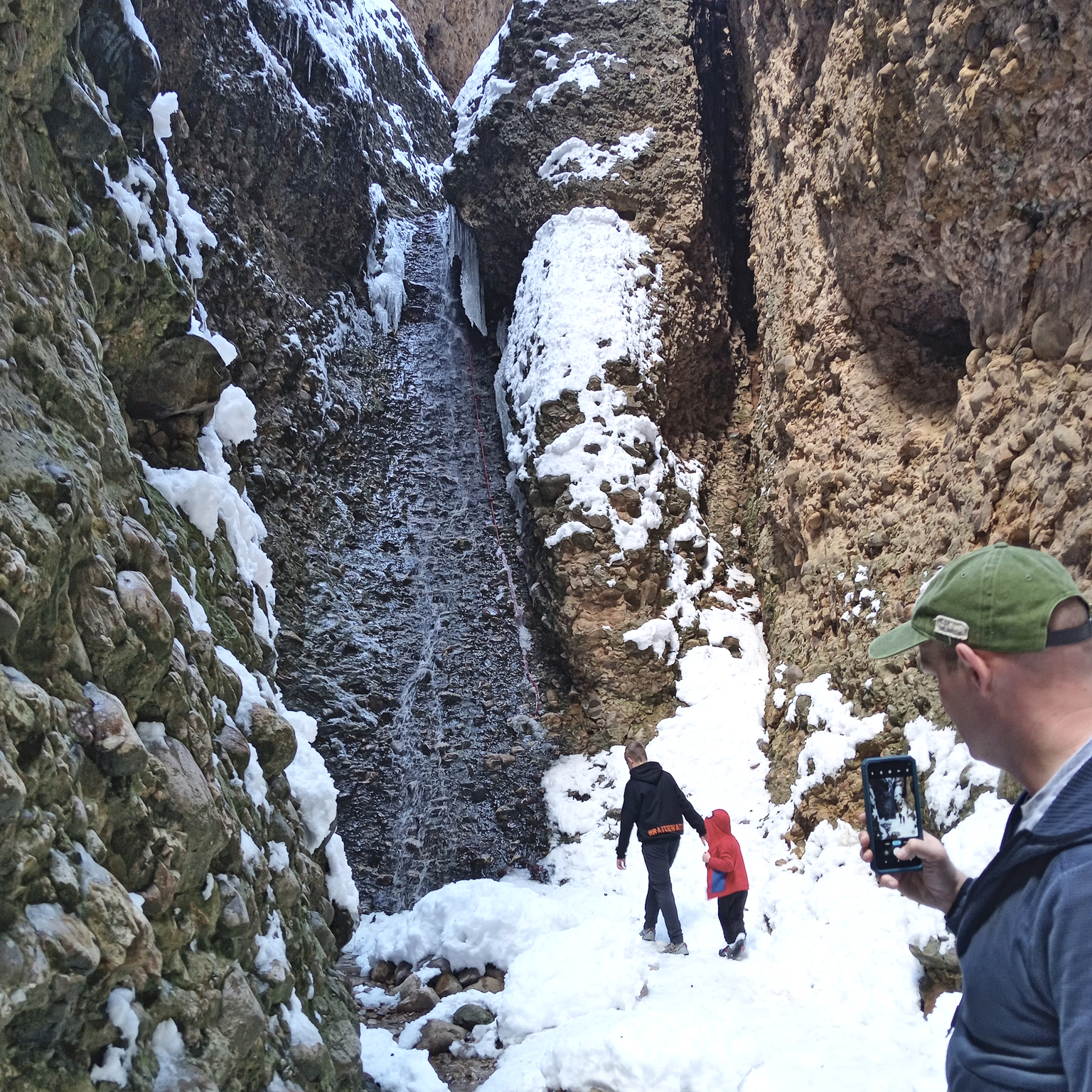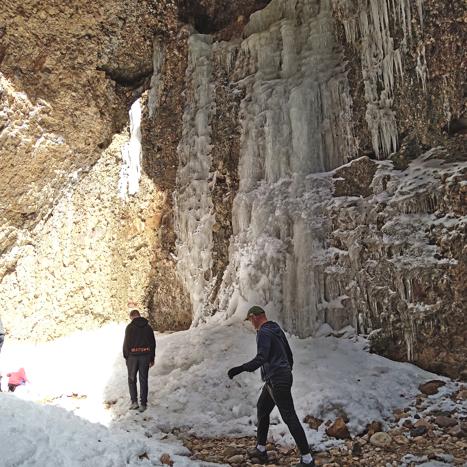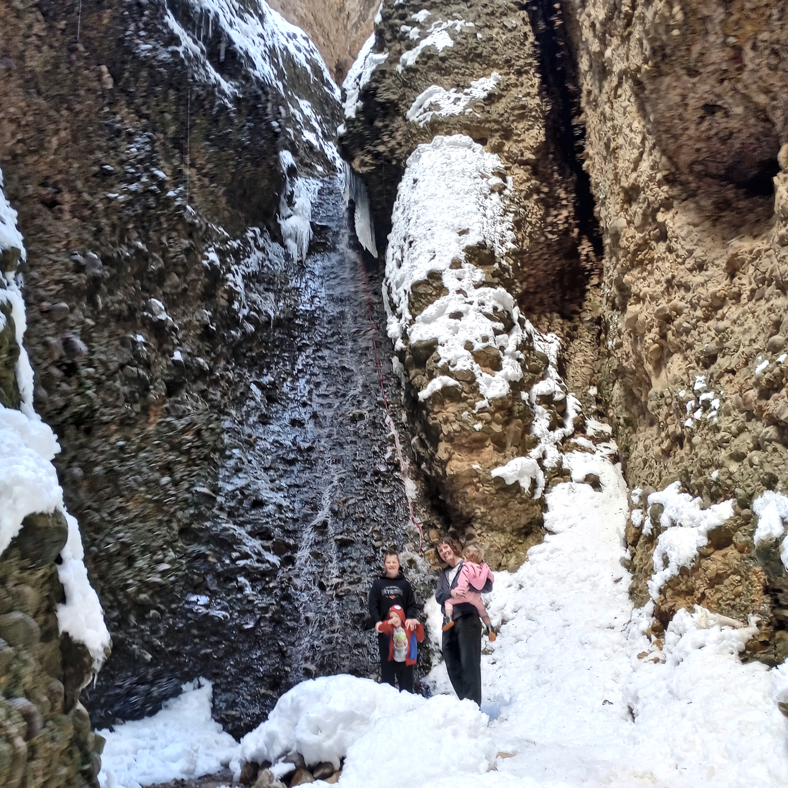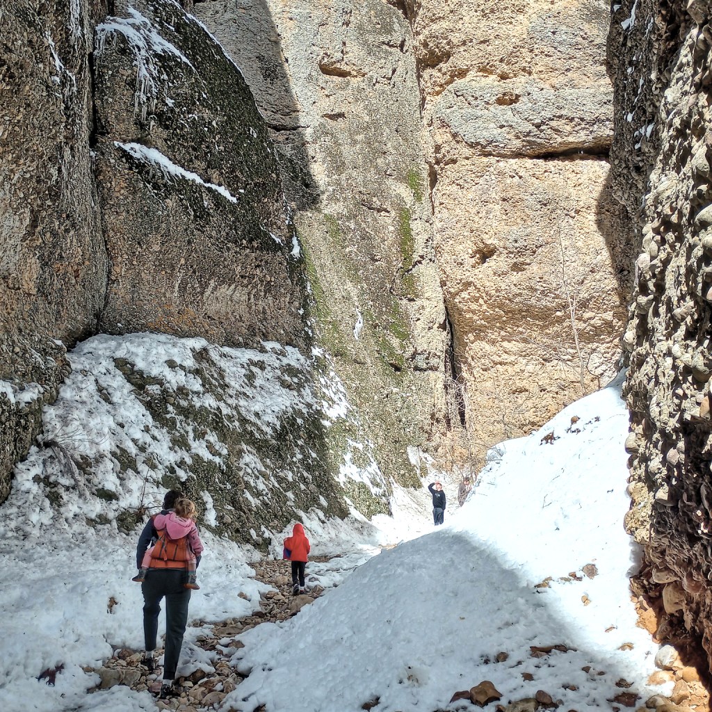 I remember hiking this trail with my husband rather early on in our relationship. I thought it would be fun to take our kids too. There’s an arch in the same area, but we didn’t make it there because there was a lot of snow. It’s easy to get so eager to go hiking once the weather warms up, but trails are often still covered in snow. We were prepared. Although Henry broke his arm the day before. (He and his brother were fighting on the tramp and he was pushed and fell on his outstretched arm. Resulting in a broken elbow.) He wasn’t allowed to do anything harder than walking. The end of the trail does get rather tricky with some climbing. Henry and Peter turned back early, and we finished with the other kids.