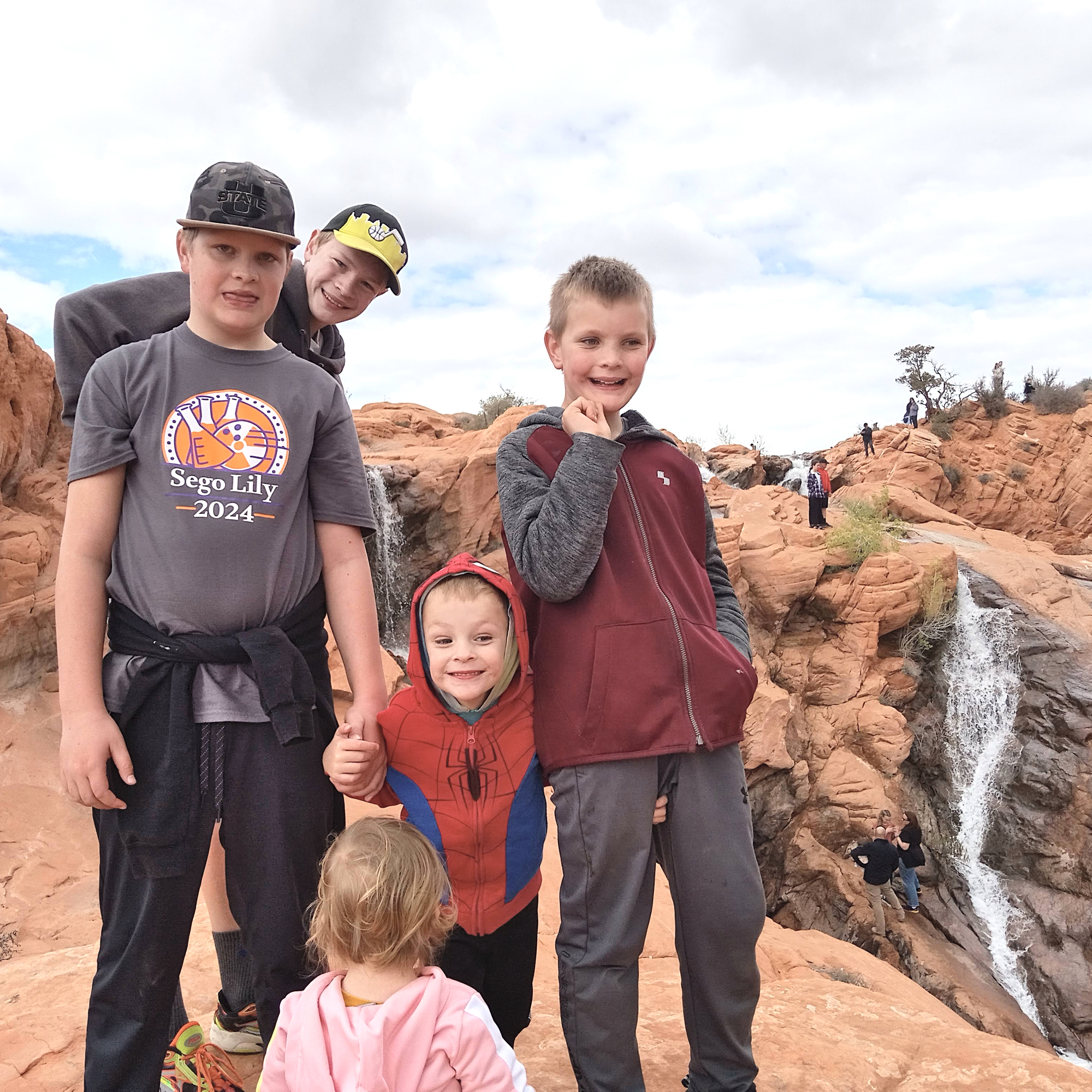 The first day we went down to St George and went to Canyon Park and Gunlock Falls. The older kids loved racing at the park. The waterfall was beautiful. We also dealt with wet feet, Henry wandering off, a sandwich thrown in the sand, and Evie getting carsick and puking all over herself and her blanket. We made it to our hotel room and had plenty of time to play in the pool.