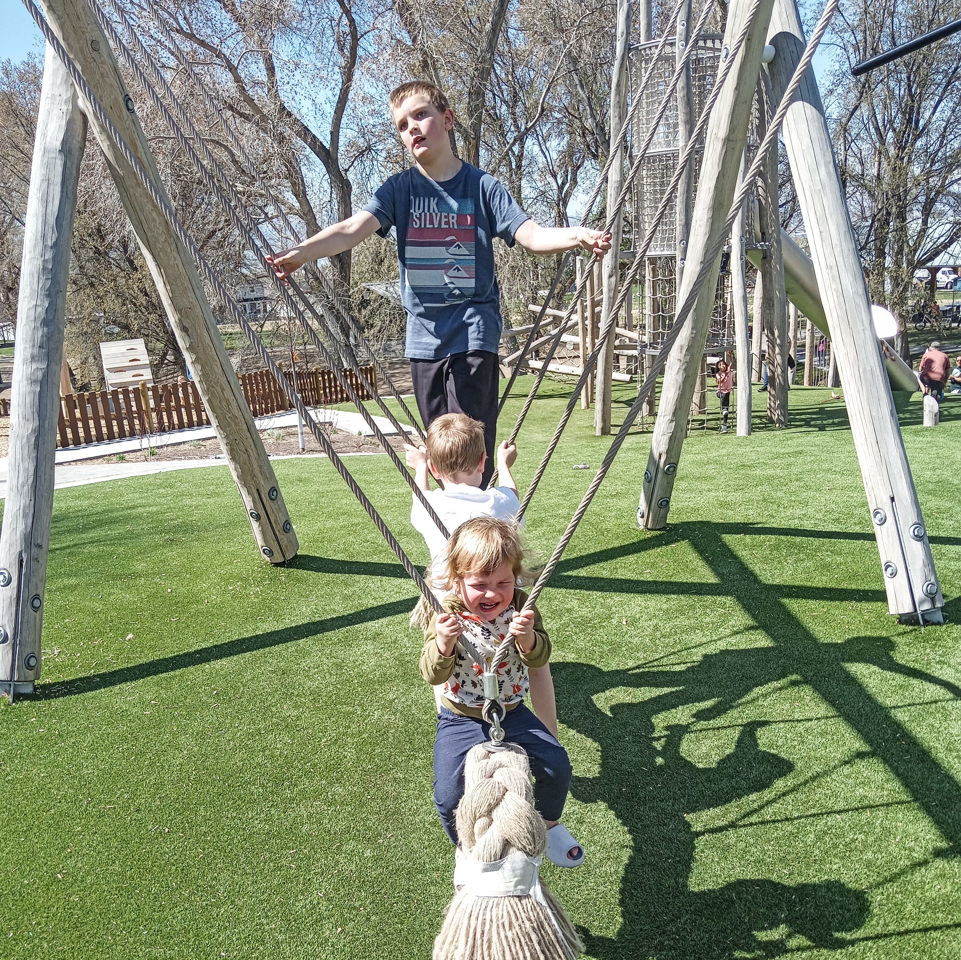 I promise Evie actually adores swings. Just not with her older brothers when Mom is trying to get a cute picture. She hates swings then.