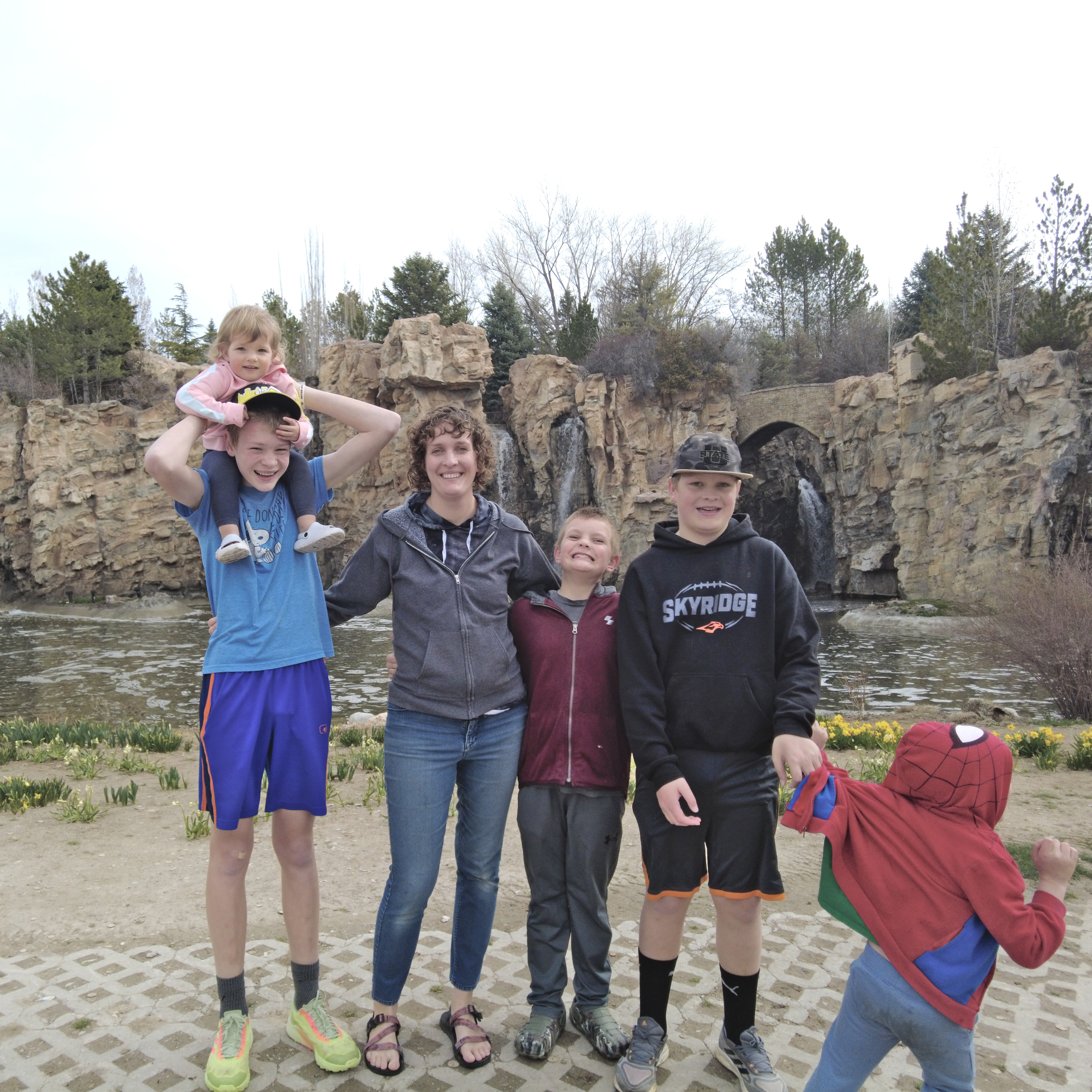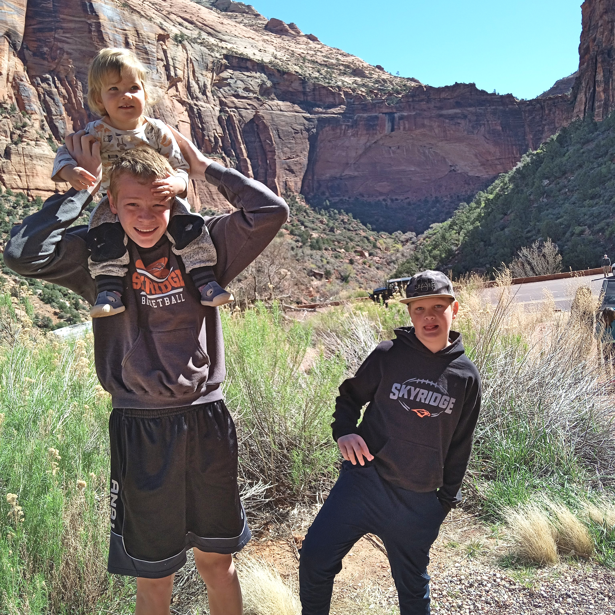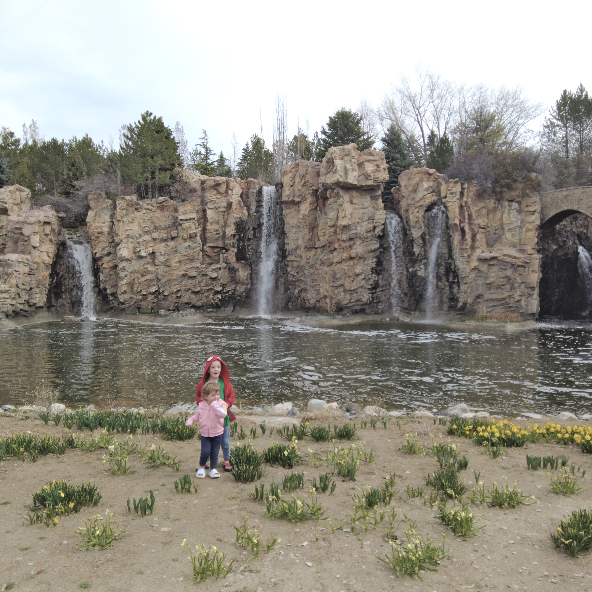 The next day we went to Zions. Don’t go in the spring, it’s too busy, like Disneyland busy. We also started out by having Evie throw up right by the entrance (carsick again), finding a parking spot a half-mile away, and losing her last extra pair of pants. It did get cleaned up, and Evie spent the day in her brother’s pants. (Incidentally, the last time I was there was when Peter was a toddler and he also ran out of pants and wore one of my long-sleeve t-shirts as pants.)