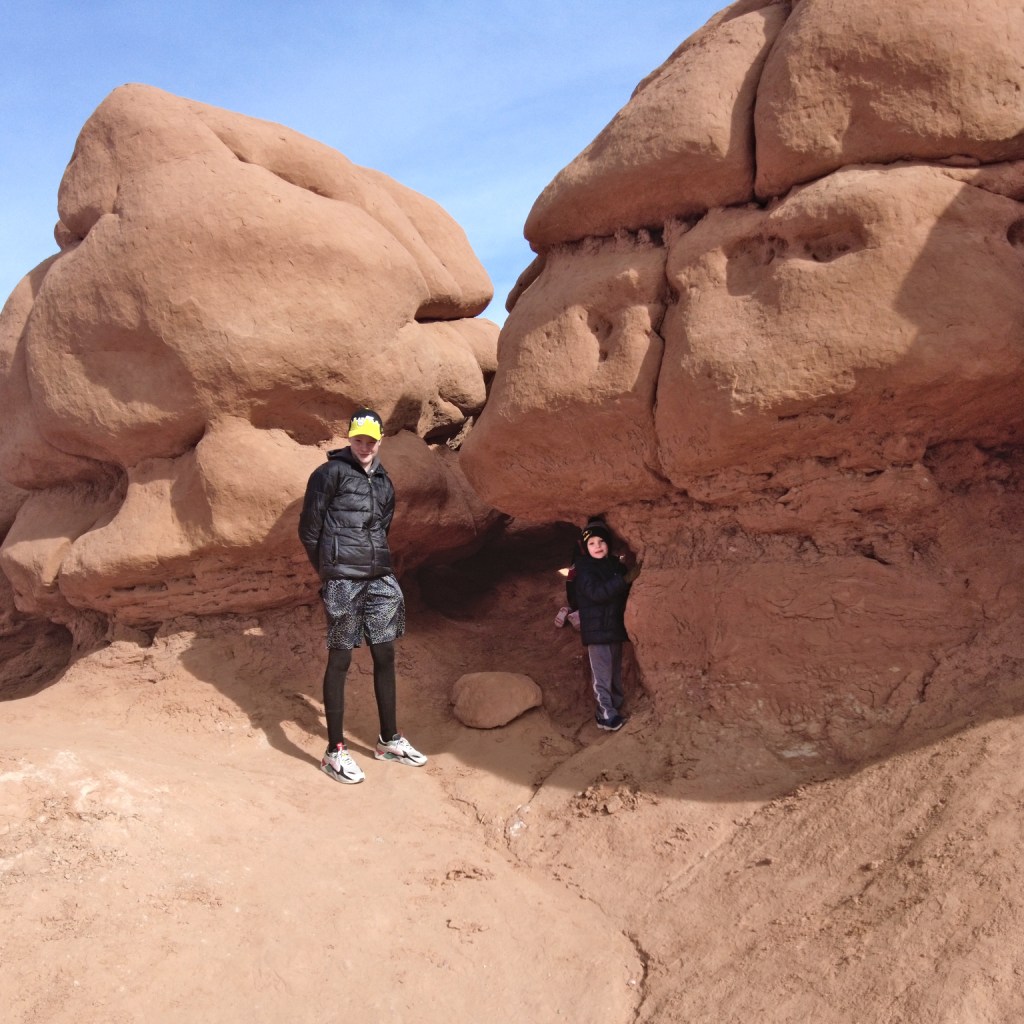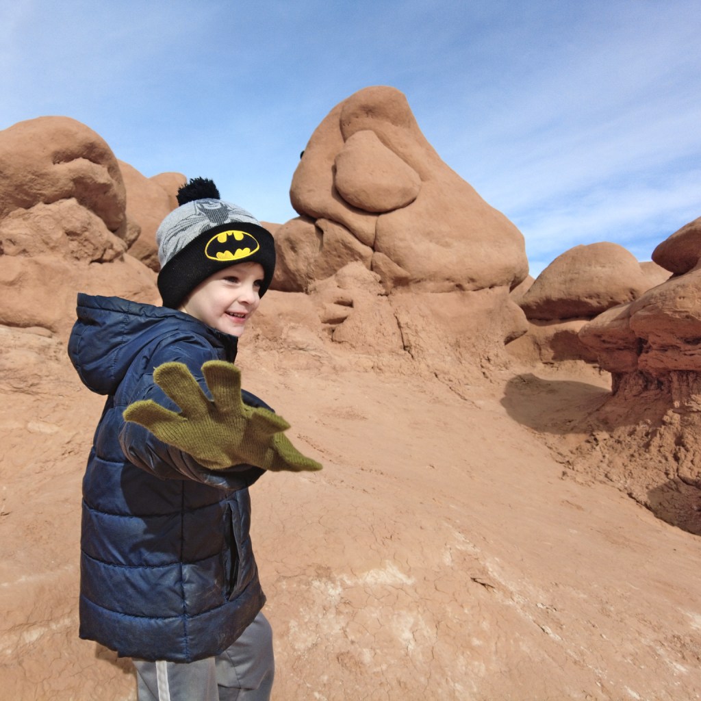 We spent the last day of Christmas break on an adventure. I let the kids choose from several options, and they went with Goblin Valley. Because it’s a giant playground. We played games, explored, and climbed, and had a great time. Henry is the one going off and exploring the most, Zack wants his picture taken, Curtis is the hide-and-seek winner, and Peter likes games better than taking in the scenery.