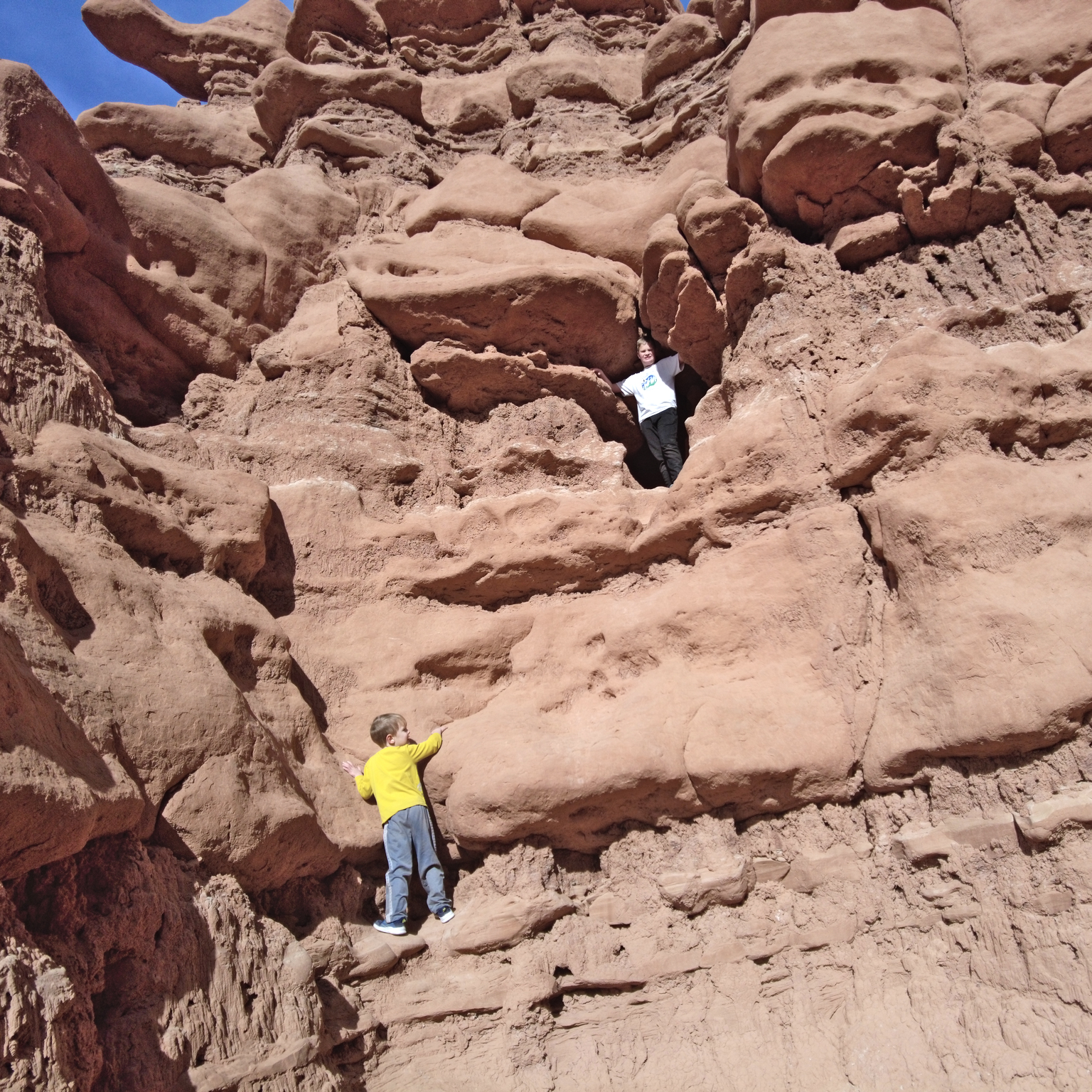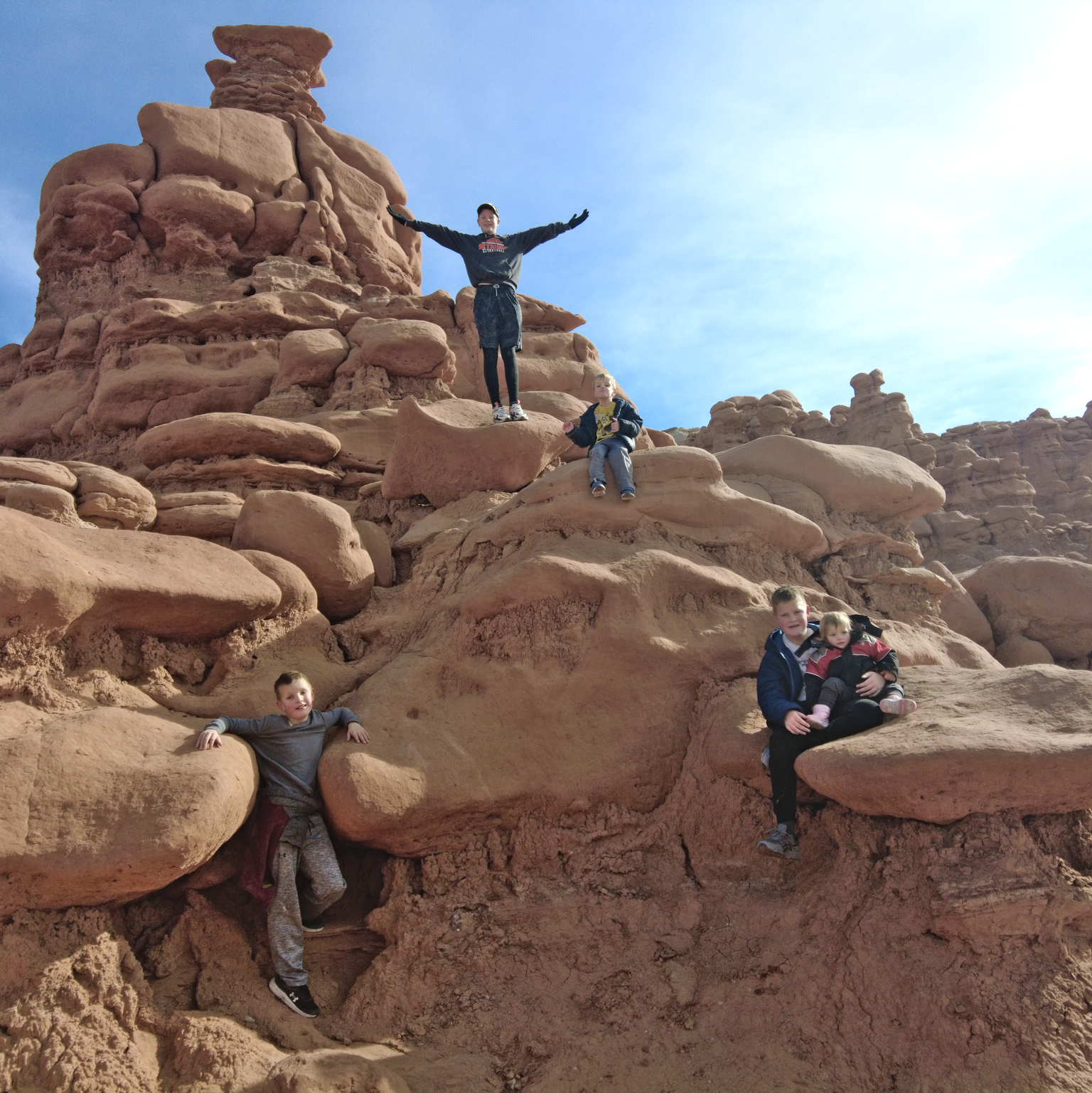 We spent the last day of Christmas break on an adventure. I let the kids choose from several options, and they went with Goblin Valley. Because it’s a giant playground. We played games, explored, and climbed, and had a great time. Henry is the one going off and exploring the most, Zack wants his picture taken, Curtis is the hide-and-seek winner, and Peter likes games better than taking in the scenery.