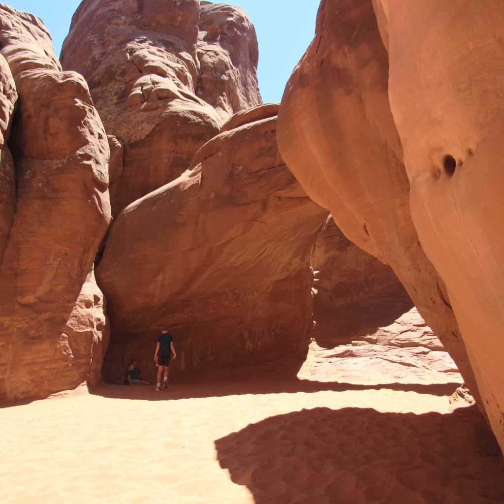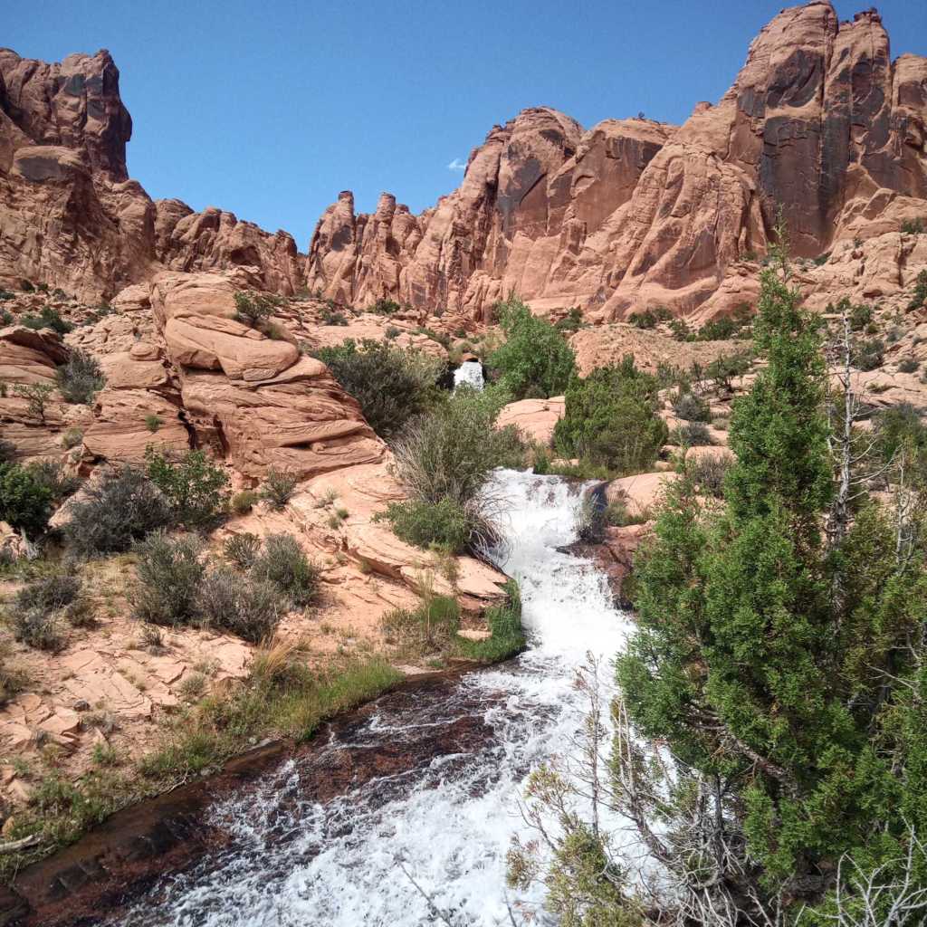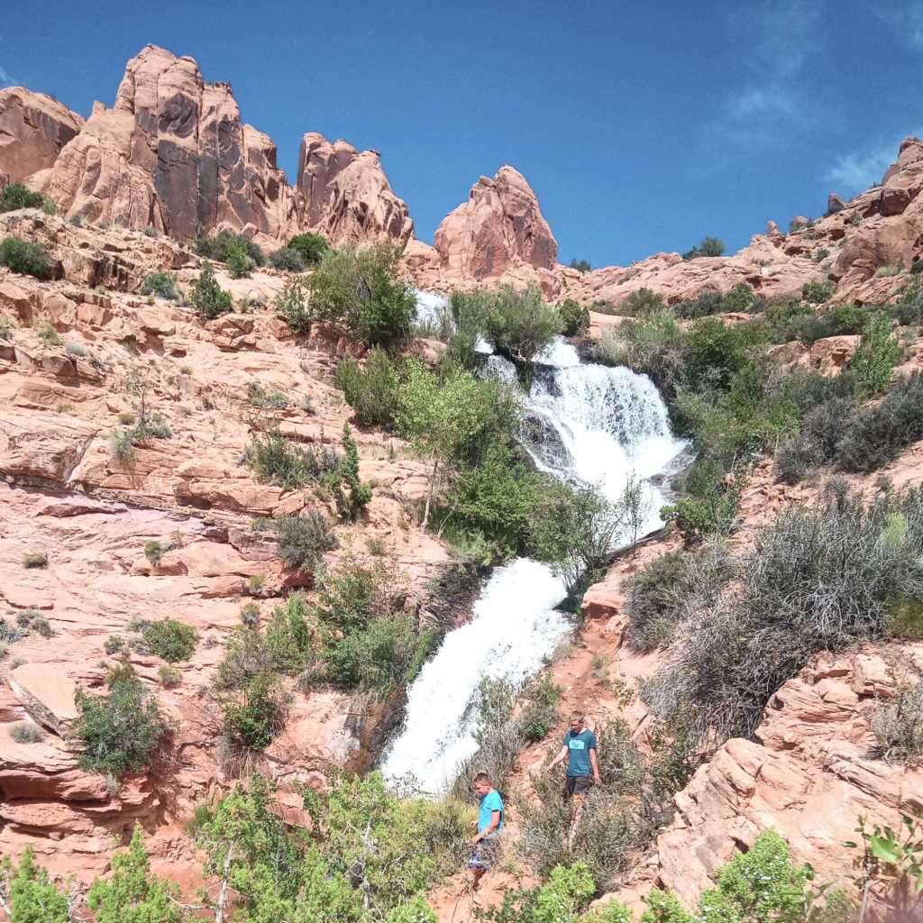 On our first day we stopped by Arches and hiked Sand Dune Arch. That’s all we did there because it was hot. We next stopped by Faux Falls and climbed around the waterfalls. We ended the day camping at Warner Lake.