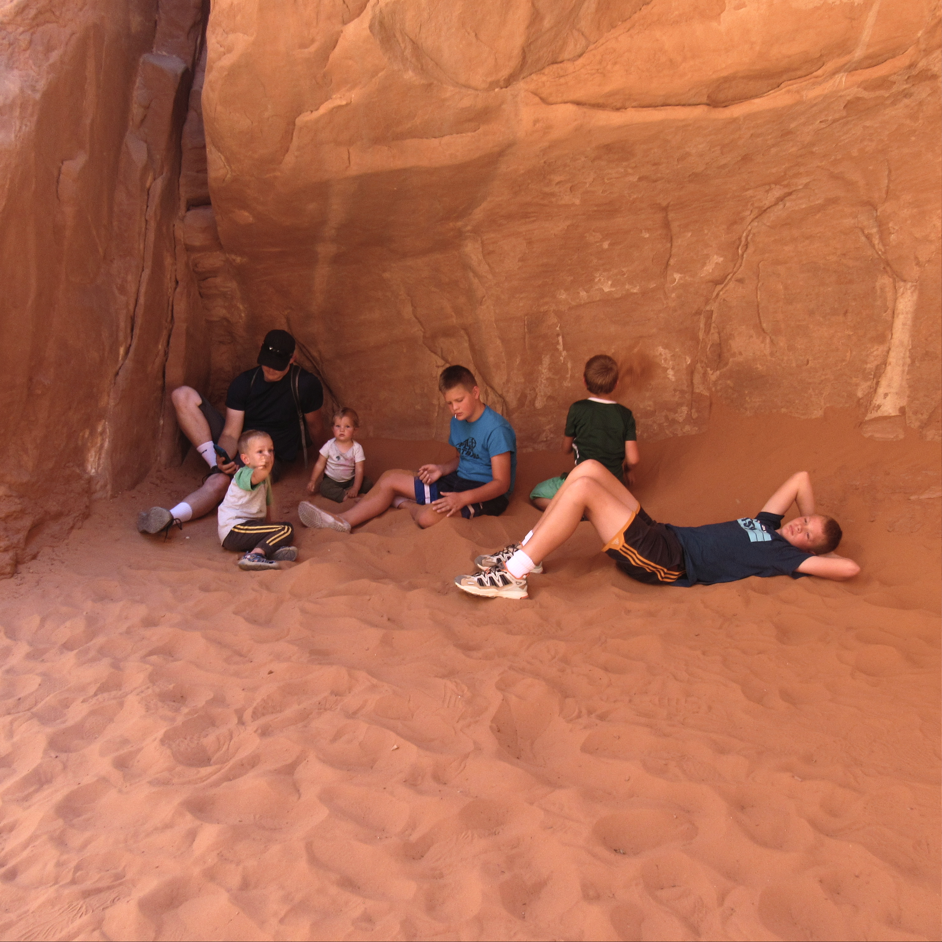 The next day, our car started to misfire and the check engine light went on. In that circumstance, we were really blessed. We just kept traveling and pulled up to the small town of Monticello. There was a small repair shop that was able to get our car right in, the parts were in stock, and we were back on the road in a couple hours for a reasonable price. While the car was being fixed, we went to a small museum and mostly hung out at the library playing on the computers. The kids had a grand time. The rest of the day was just too hot. We stopped by Fort Bluff, which was cool but hot, and Hovenweep, which was too hot (in the 100’s) to do anything. The best part of the day was waiting in the library for the car to be fixed.