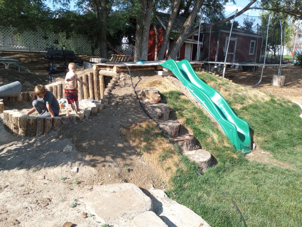 Also, here is my nature play hill that is close to done now. It’s been so much work that I’ve piled onto my dad and husband, and I’m so grateful that they trusted me enough to put the work in.