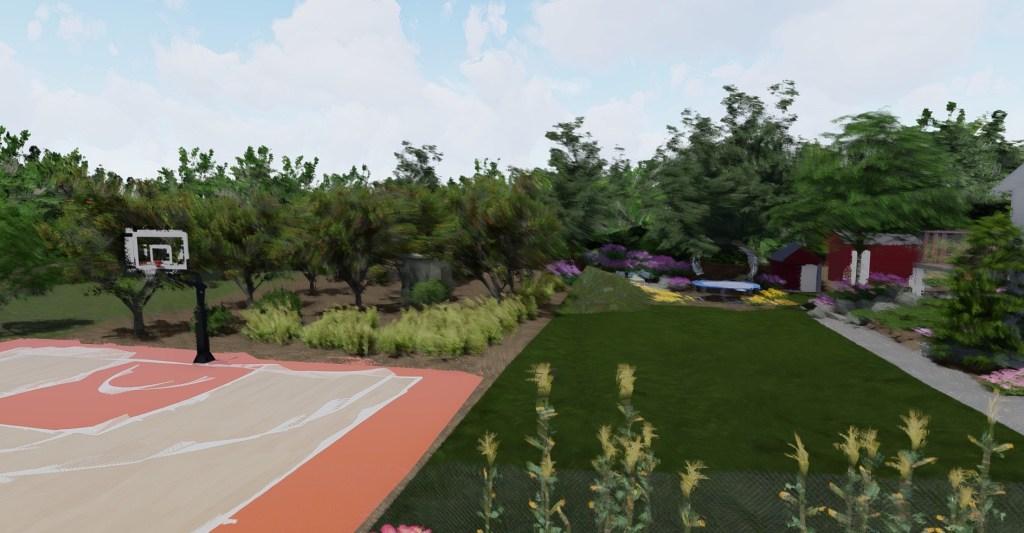 This landscape design features a small farm and residence and was completed as a small group project for a school assignment.
