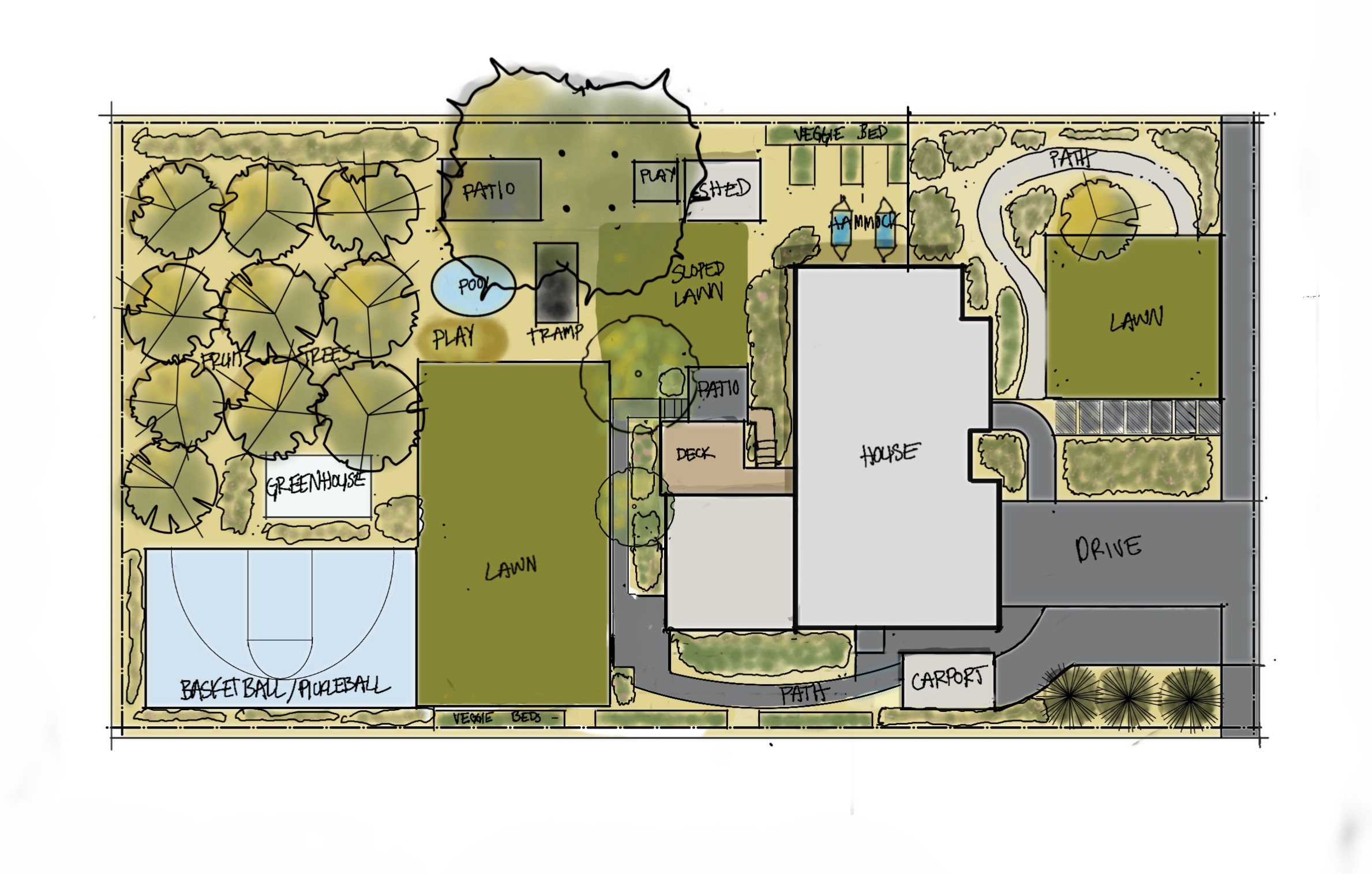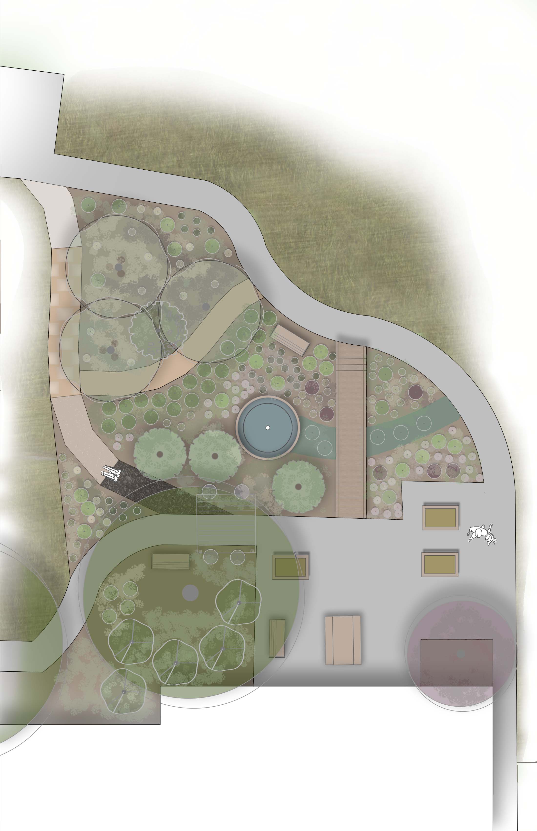 This landscape design features a small farm and residence and was completed as a small group project for a school assignment.