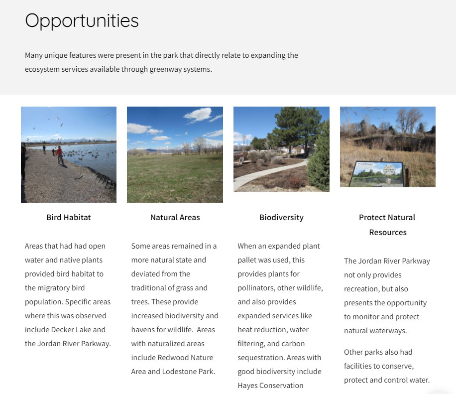 As part of a team, we explored the importance and expansion of a greenway network in western Salt Lake County, with a specific focus on ecosystem services The full project is available at this link.