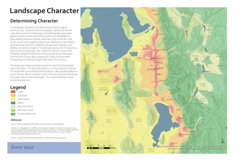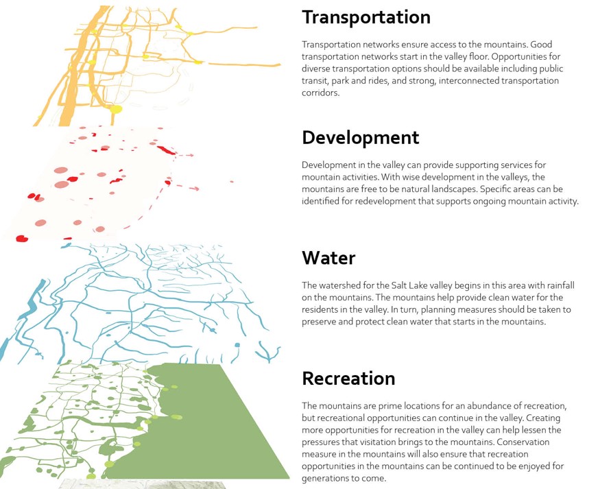 This project was part of a large group collaboration that focused on an analysis of Salt Lake County. My contribution included a landscape character analysis and exploration into networks.