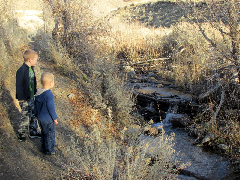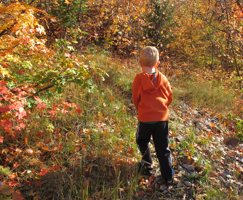 After awhile Mr. C had no interest in moving forward: throwing rocks was far more interesting. I put him in the carrier. We soon broke off the larger path and headed up the canyon where it was more rocky. PB shot off, and I only saw him periodically until we got to the falls. Climbing over the rocks was very fun for him, and he ended up being a great hiker.