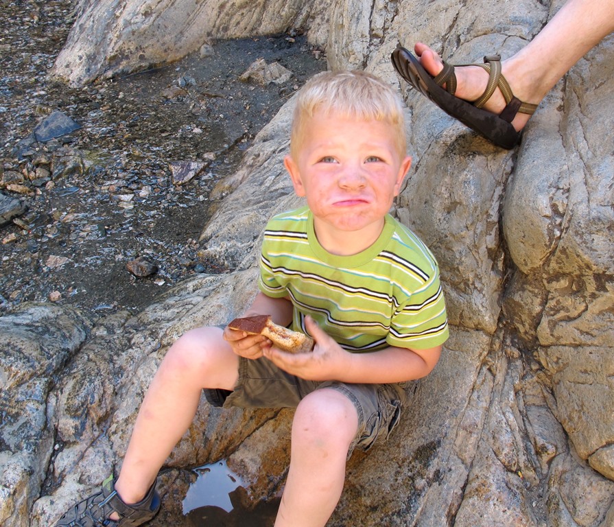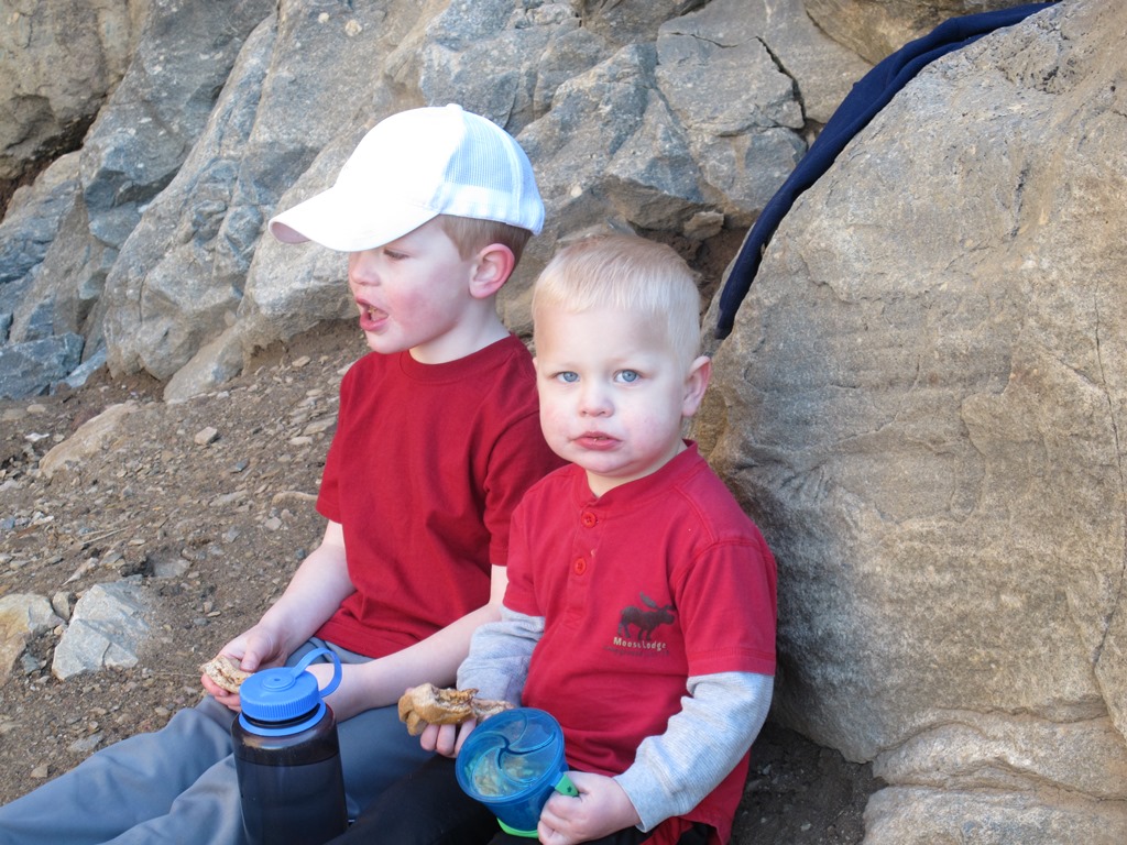The start of the way back was the hardest: it was steep and rocky and both boys were slipping and freaking out. I had to carry Mr. C again, and then we did much better. It was a lot of fun, and I would do it again, although it is nice to have Joe around to carry the toddler. (We just like him too.) But I think me and PB could hike anything.