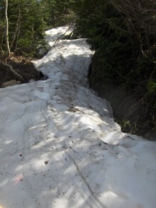 Mountains are funny–I was hiking east, yet I was also delaying sunrise by doing so. It was nice a cool for the first couple of hours. Actually a little too cold–I could tell Peter wasn’t enjoying it. His parents were a bit negligent in the jacket department. Peter walked a little, but mostly rode in the pack and even slept a little. We breezed by the falls and other sites, more intent on making decent time. (The falls are nothing new anyways.) It was a gorgeous morning with all the birds out.